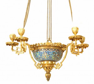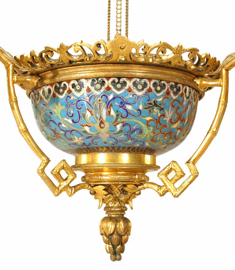 Style: French Materials & Techniques: Enamel, bronze, bronze dore, bamboo Category: Lighting