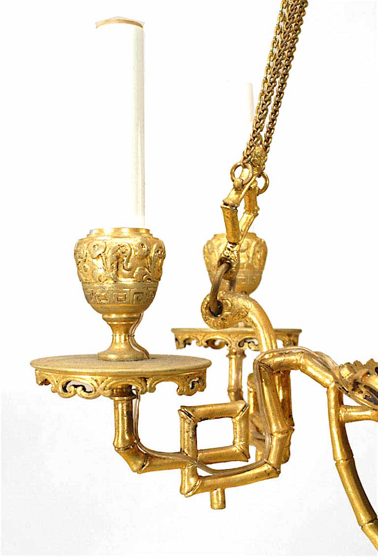 French Victorian Bronze Dore Faux Bamboo Chandelier