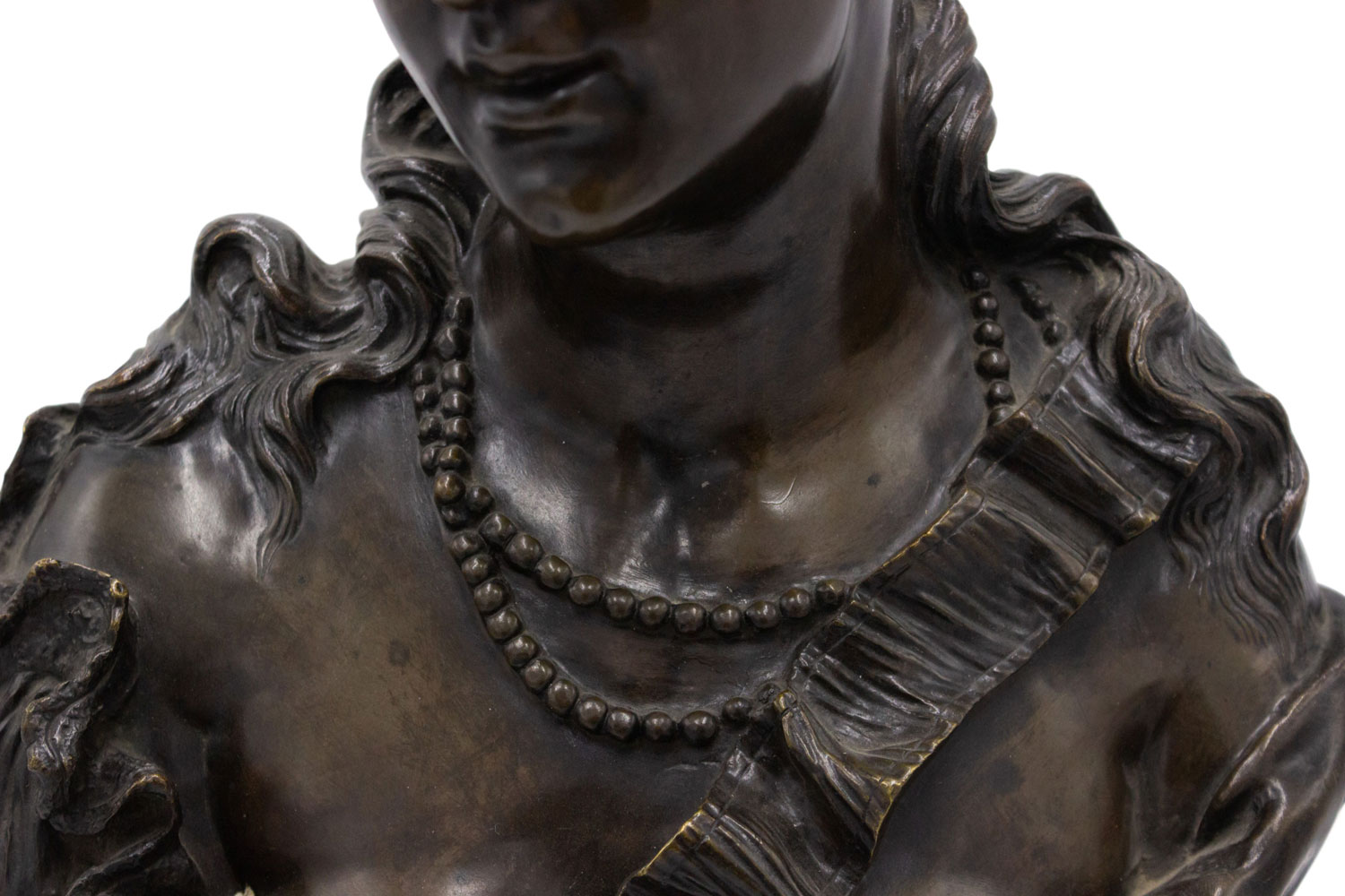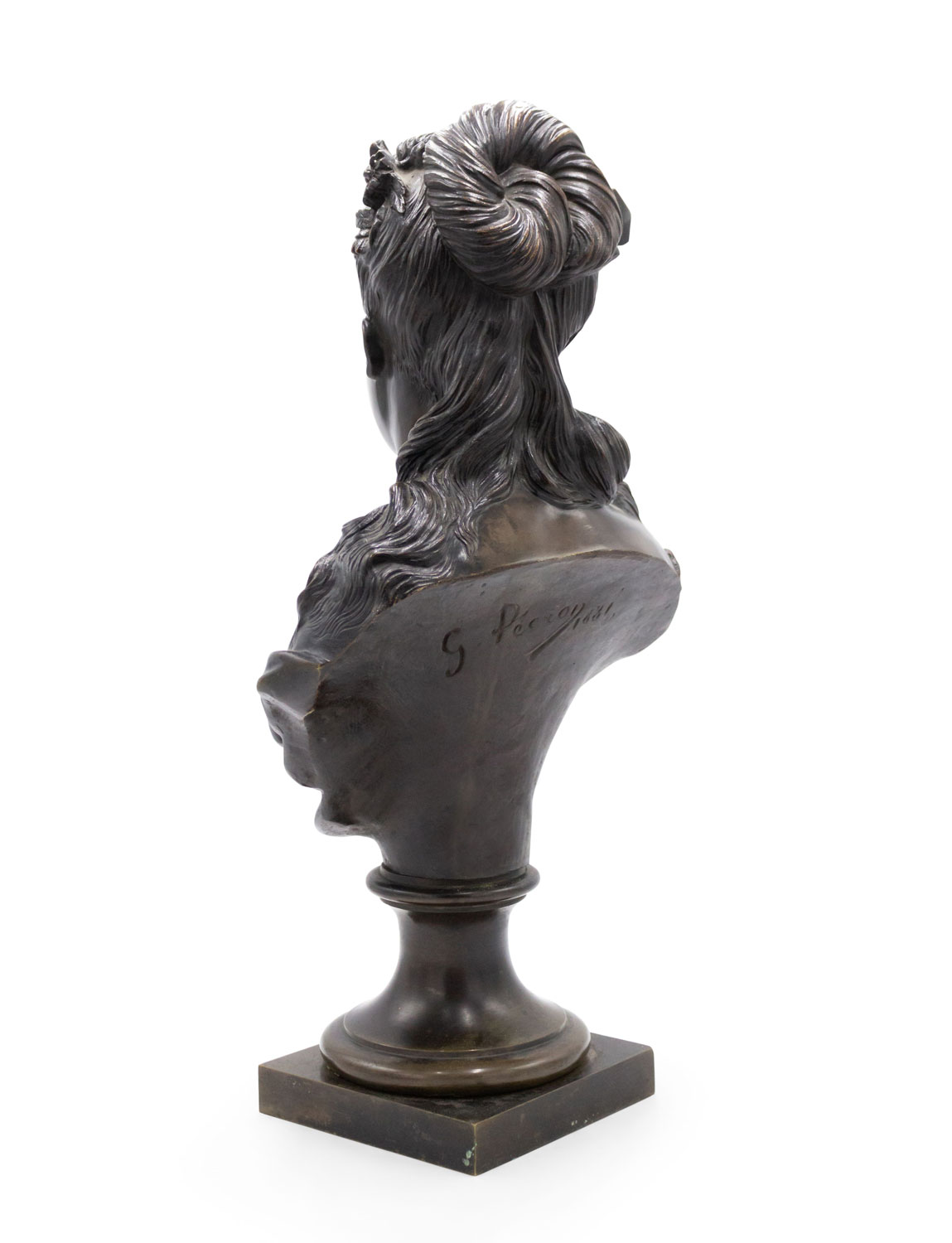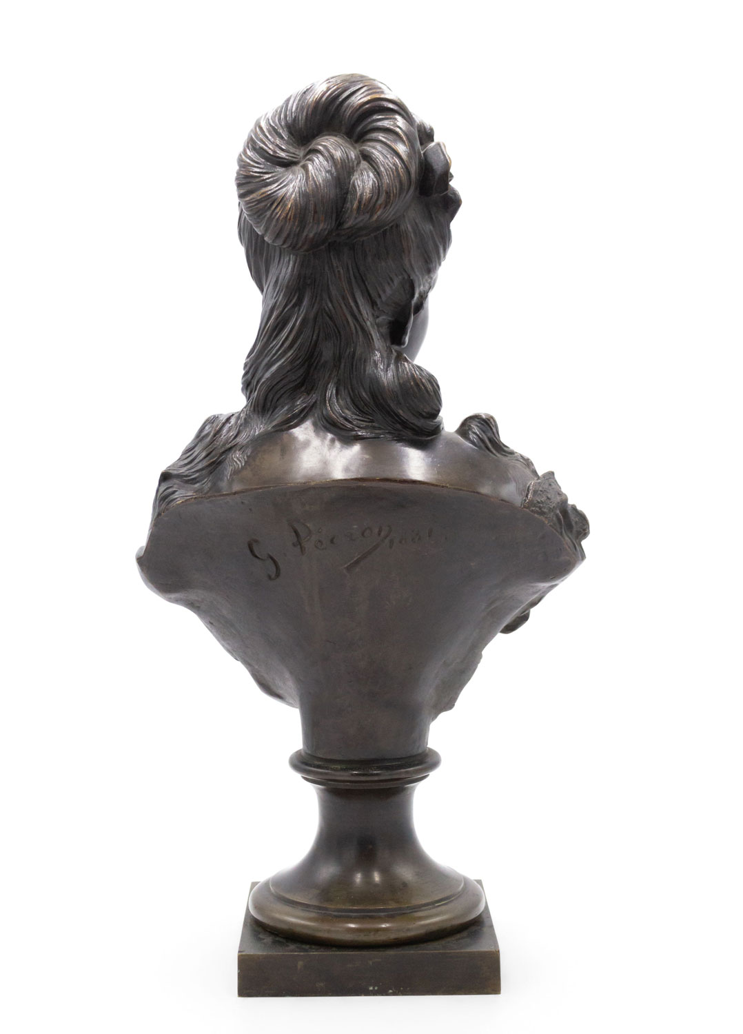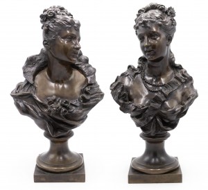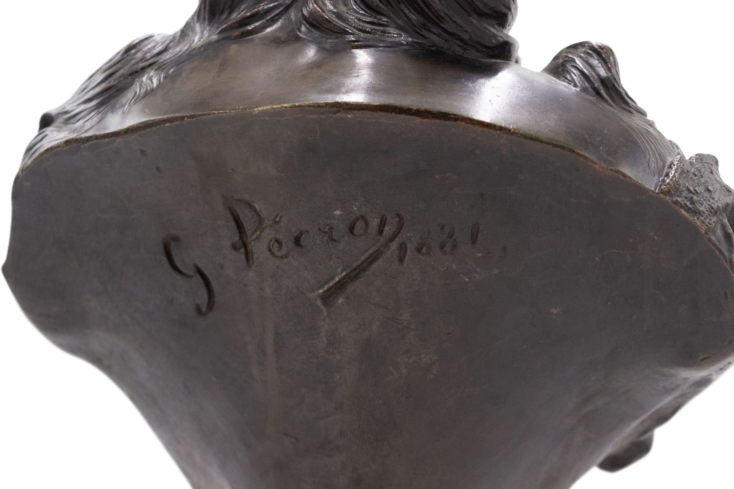 PAIR of bronze busts of French 19th Century court ladies on pedestal base (signed G. PECRON, 1881).