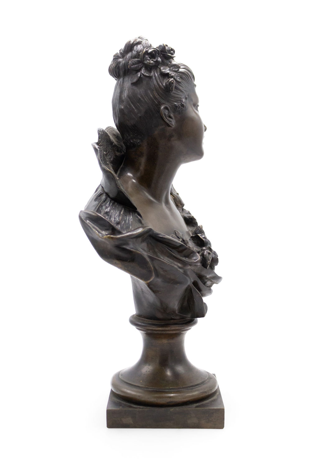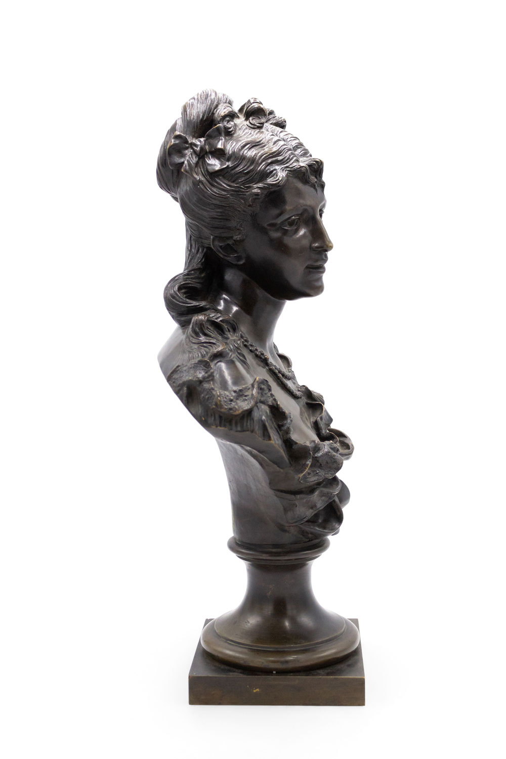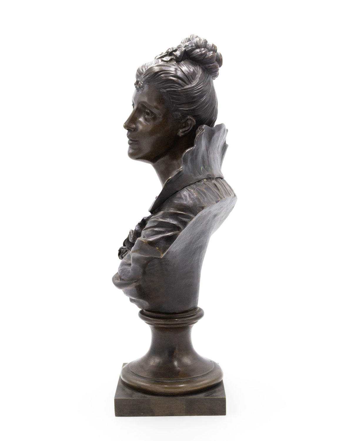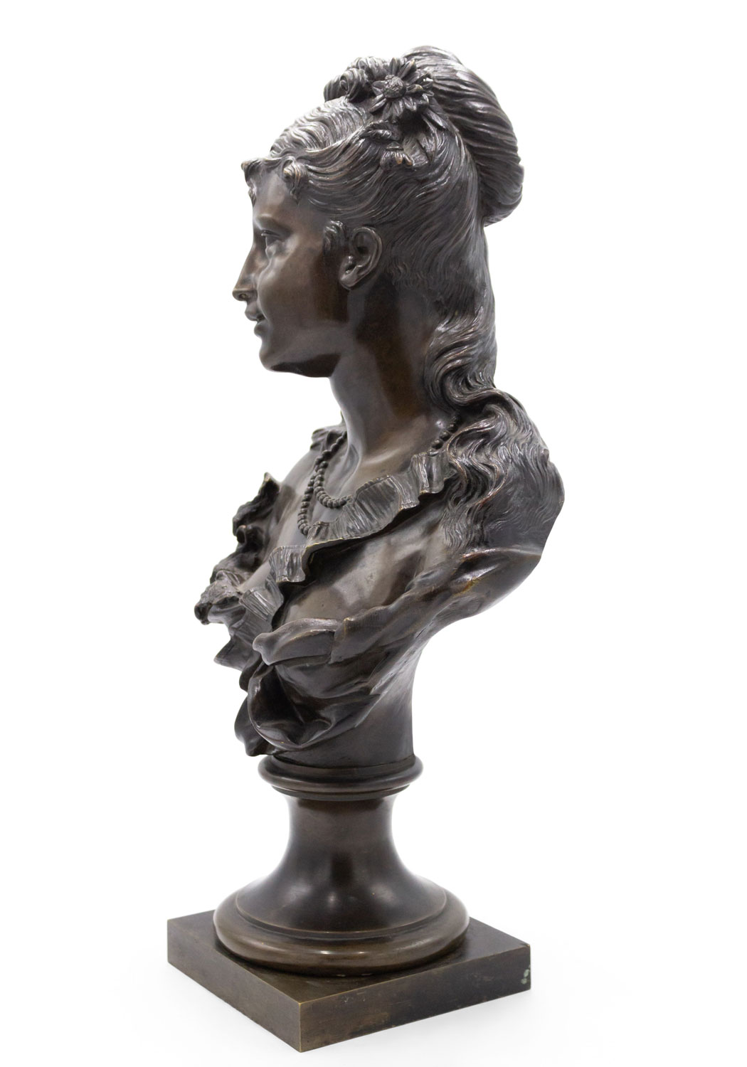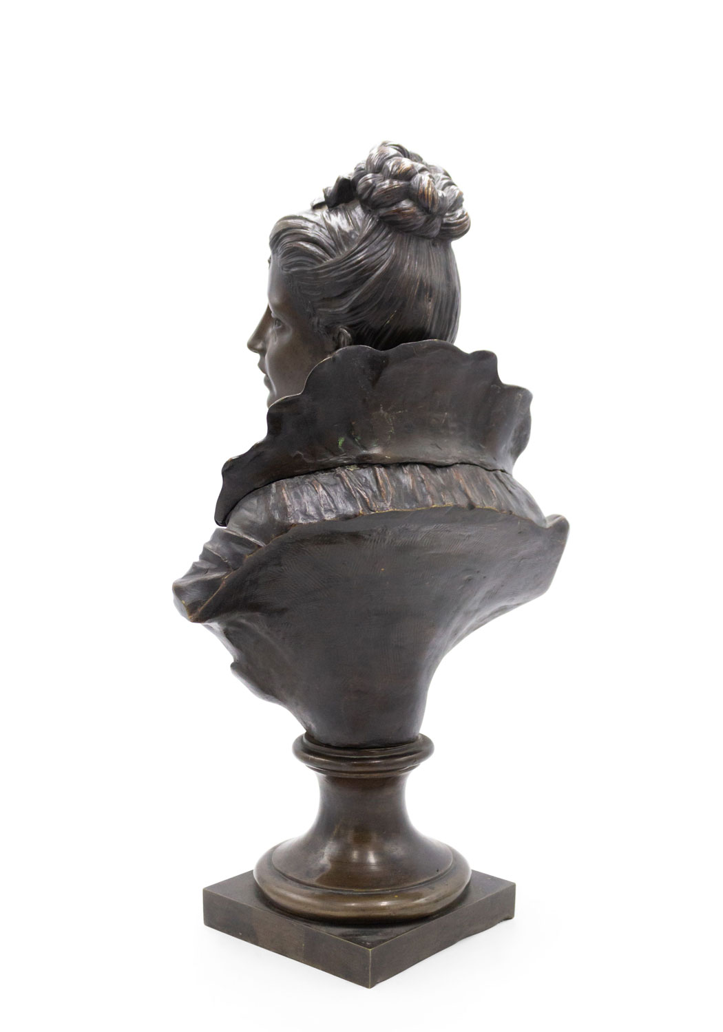 PAIR of bronze busts of French 19th Century court ladies on pedestal base (signed G. PECRON, 1881).