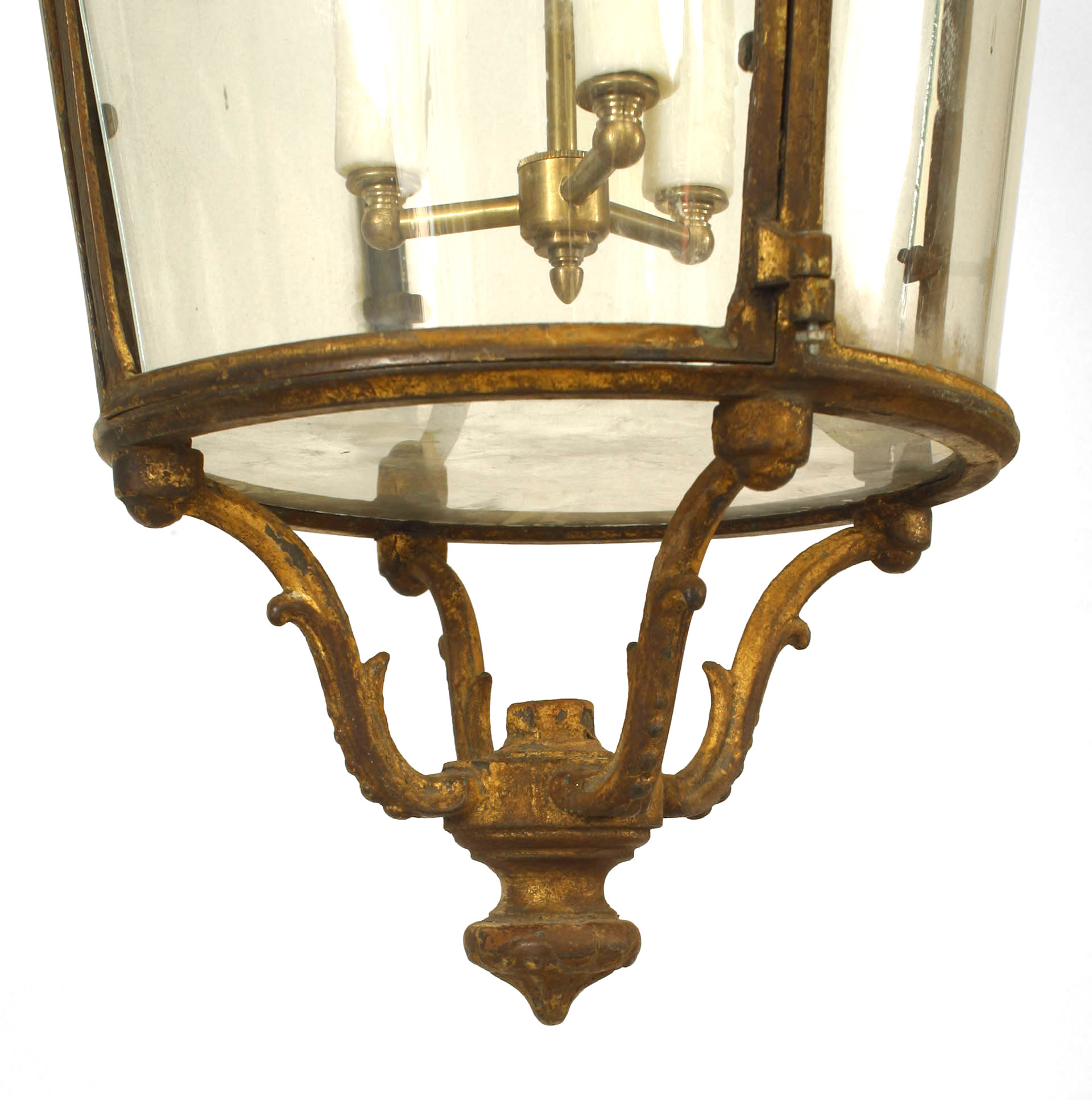 PAIR of French Victorian bronze 4 sided bent glass paneled lanterns with scroll bracket wall support (PRICED AS PAIR)..