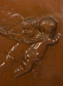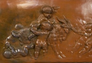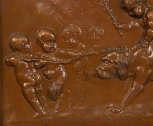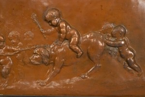 Pair of French Victorian Copper Cupid and Animals Wall Plaques