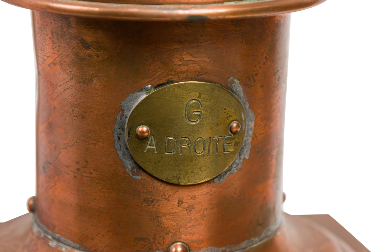 French Victorian copper square railroad embarkment lantern with 2 glass panels..