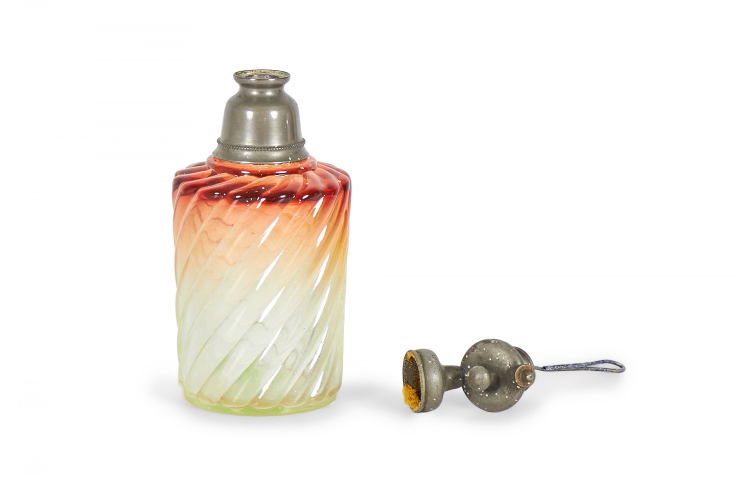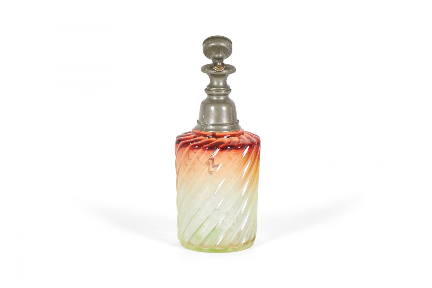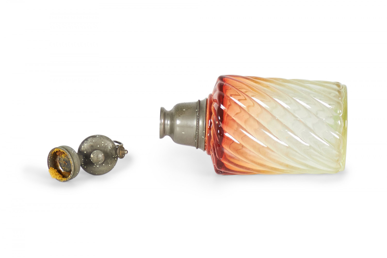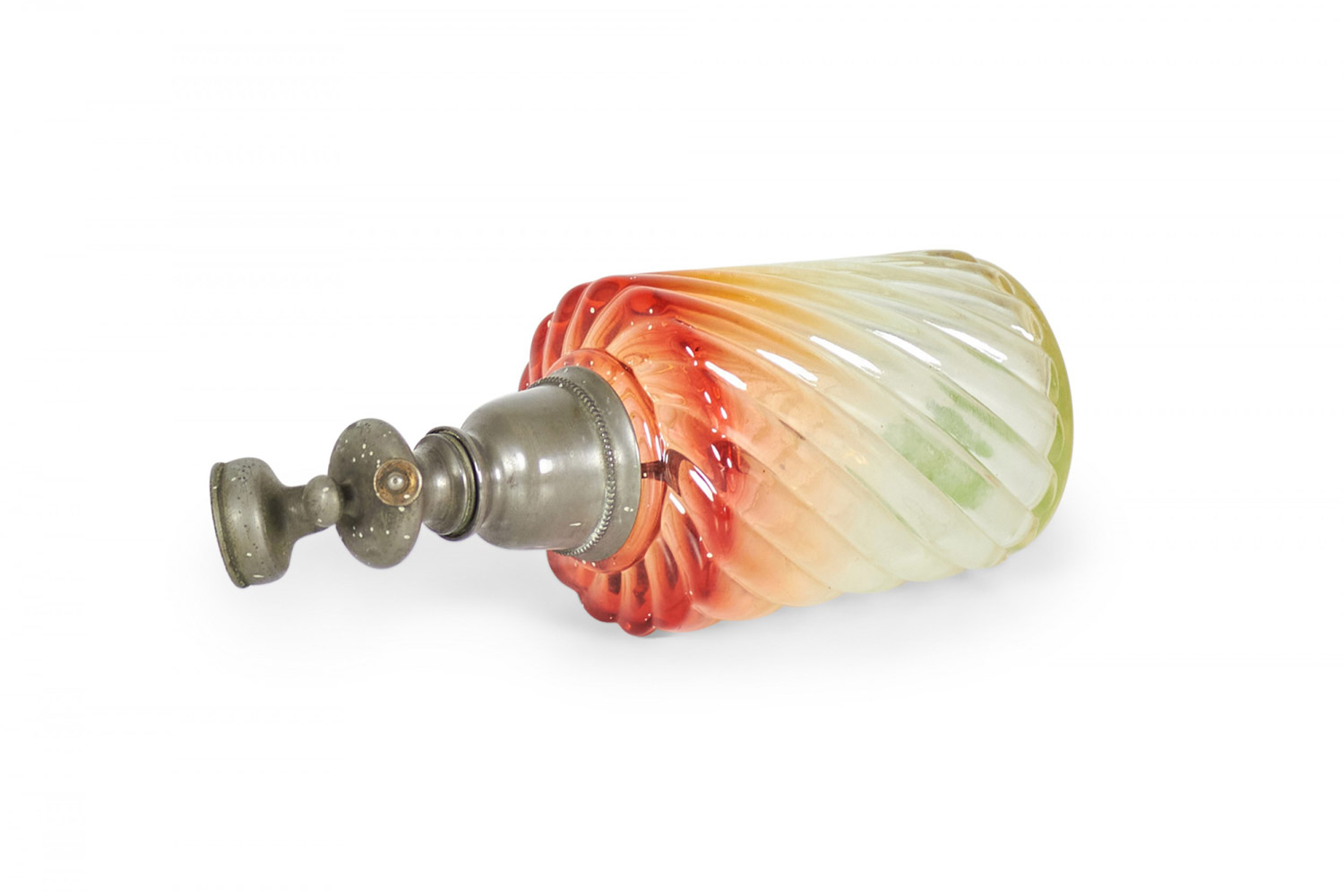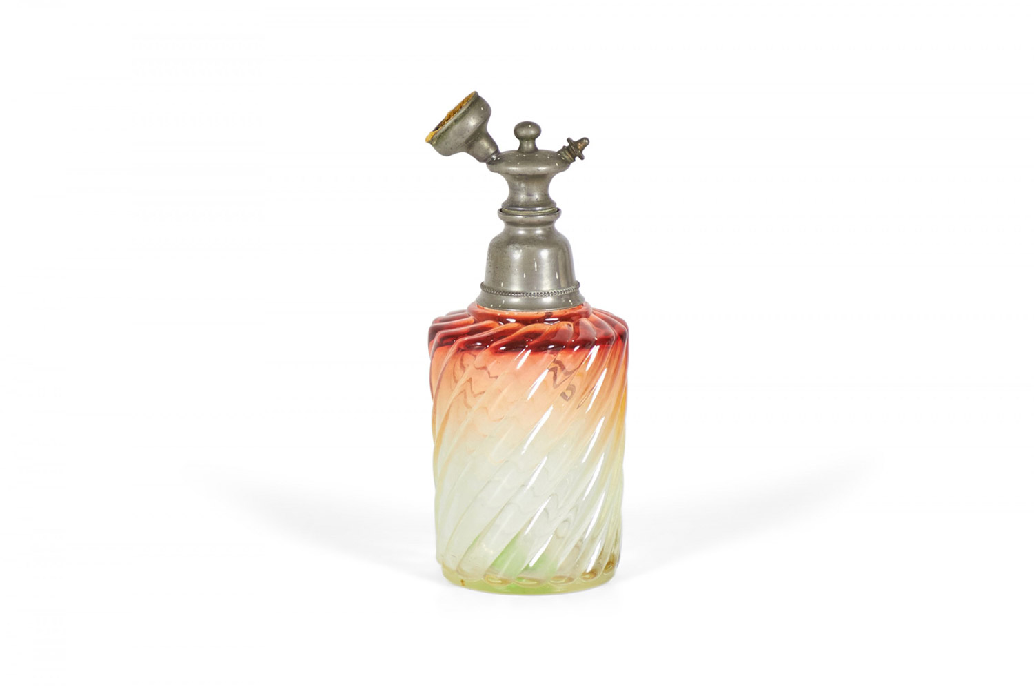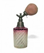 French Victorian cranberry colored Baccarat crystal perfume atomizer with swirl design and pewter top.