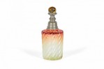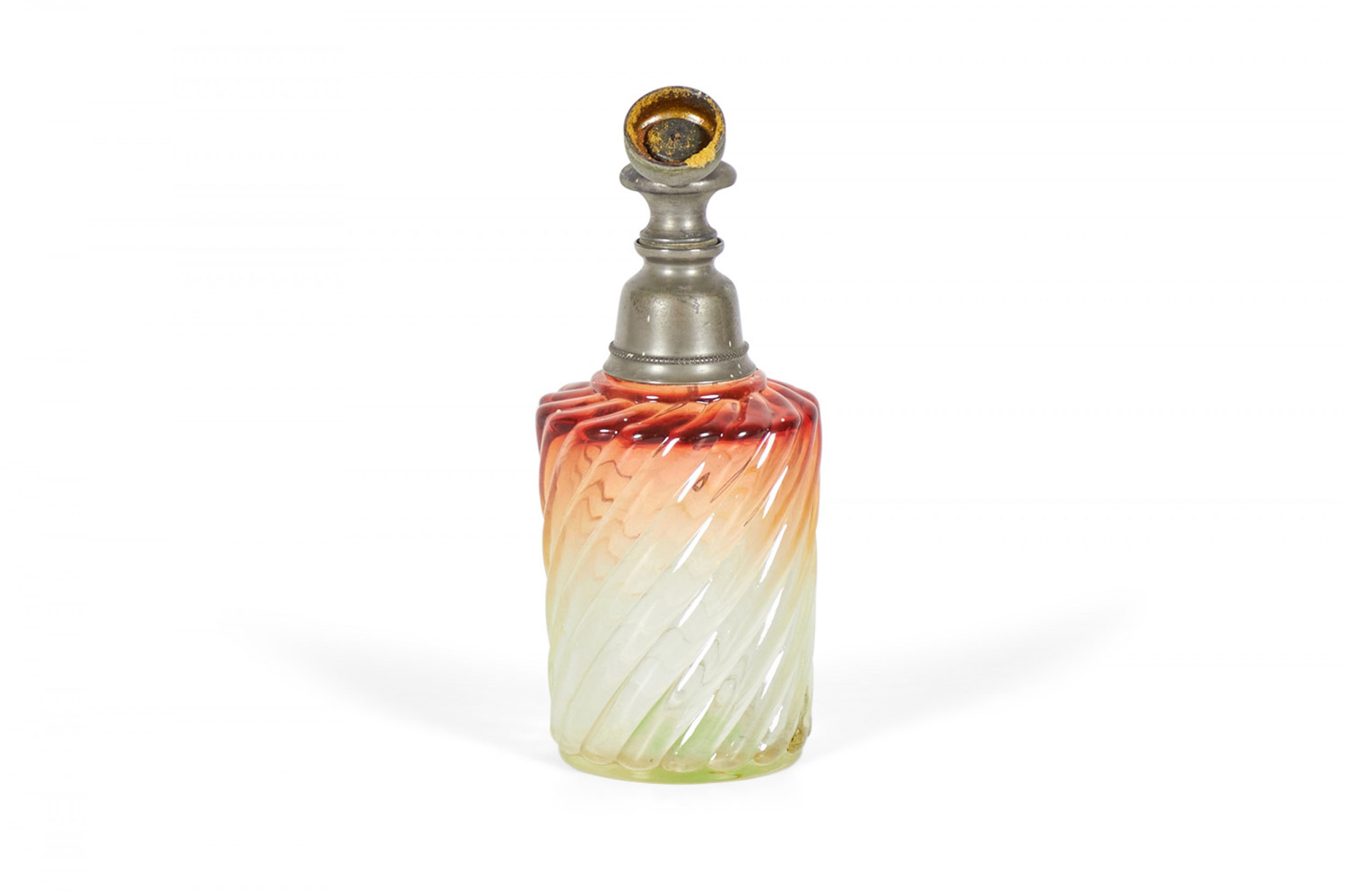 French Victorian cranberry colored Baccarat crystal perfume atomizer with swirl design and pewter top