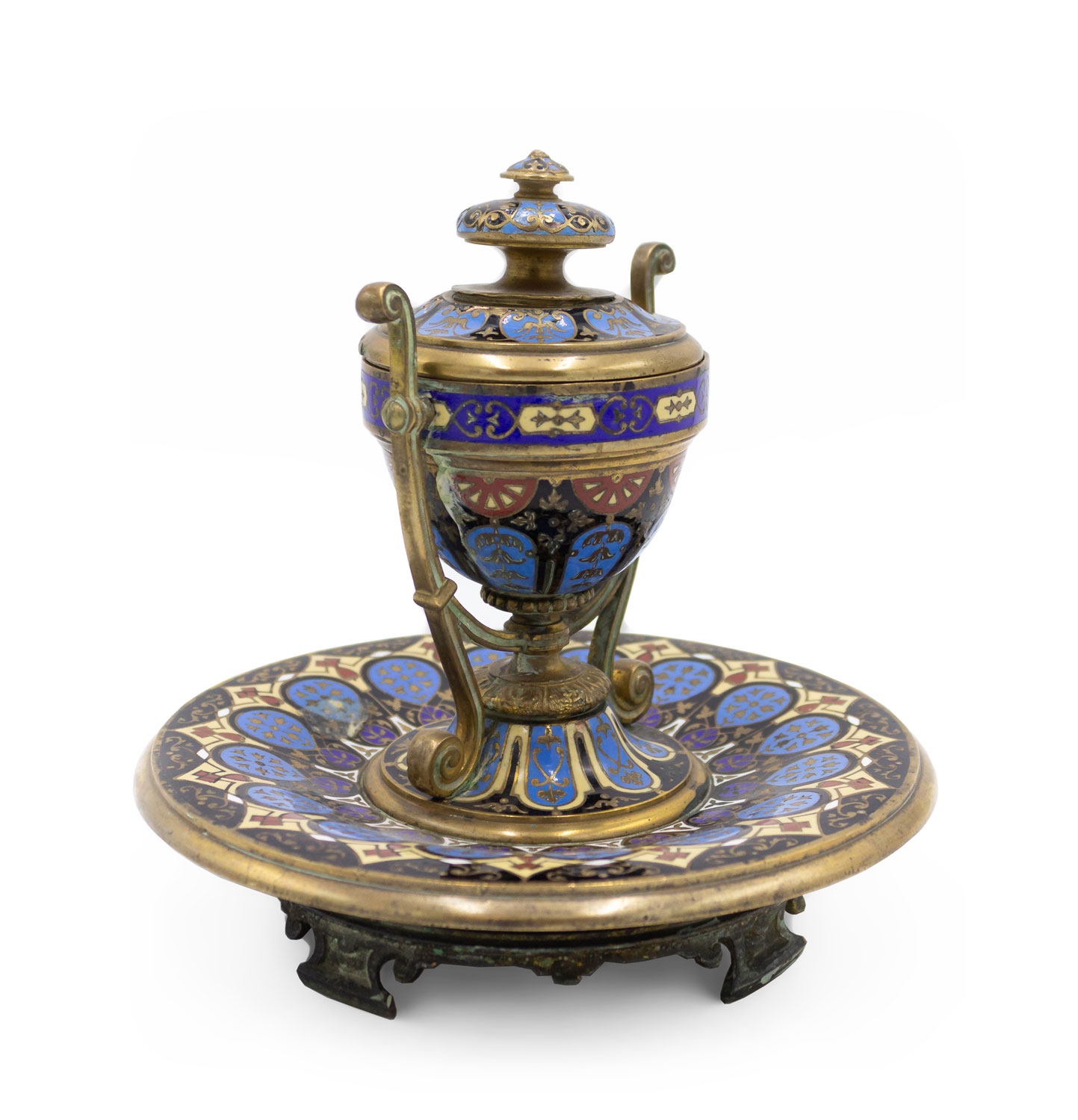 French Victorian Enamel Urn Inkwell
