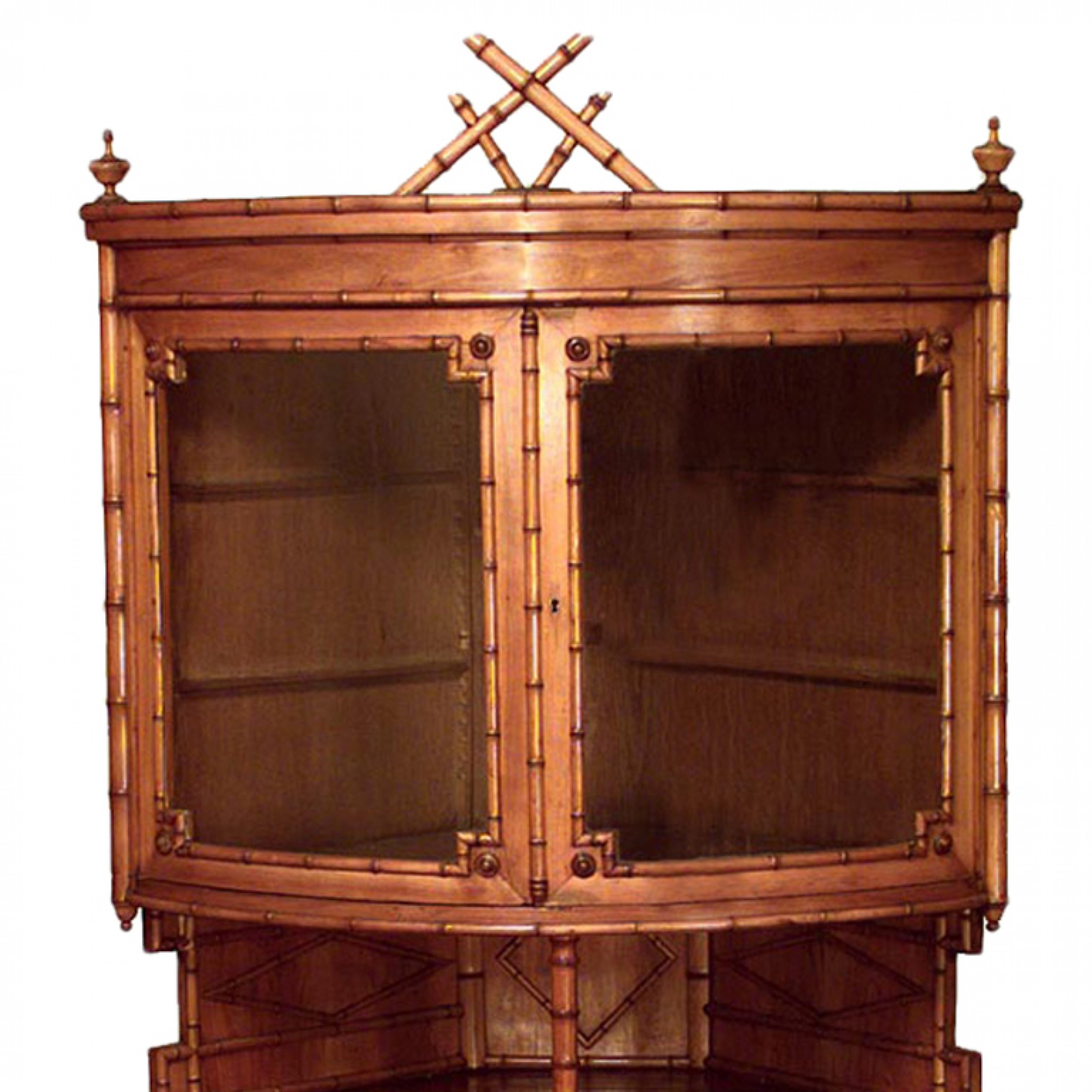 French Victorian Faux Bamboo Maple Corner Cabinet