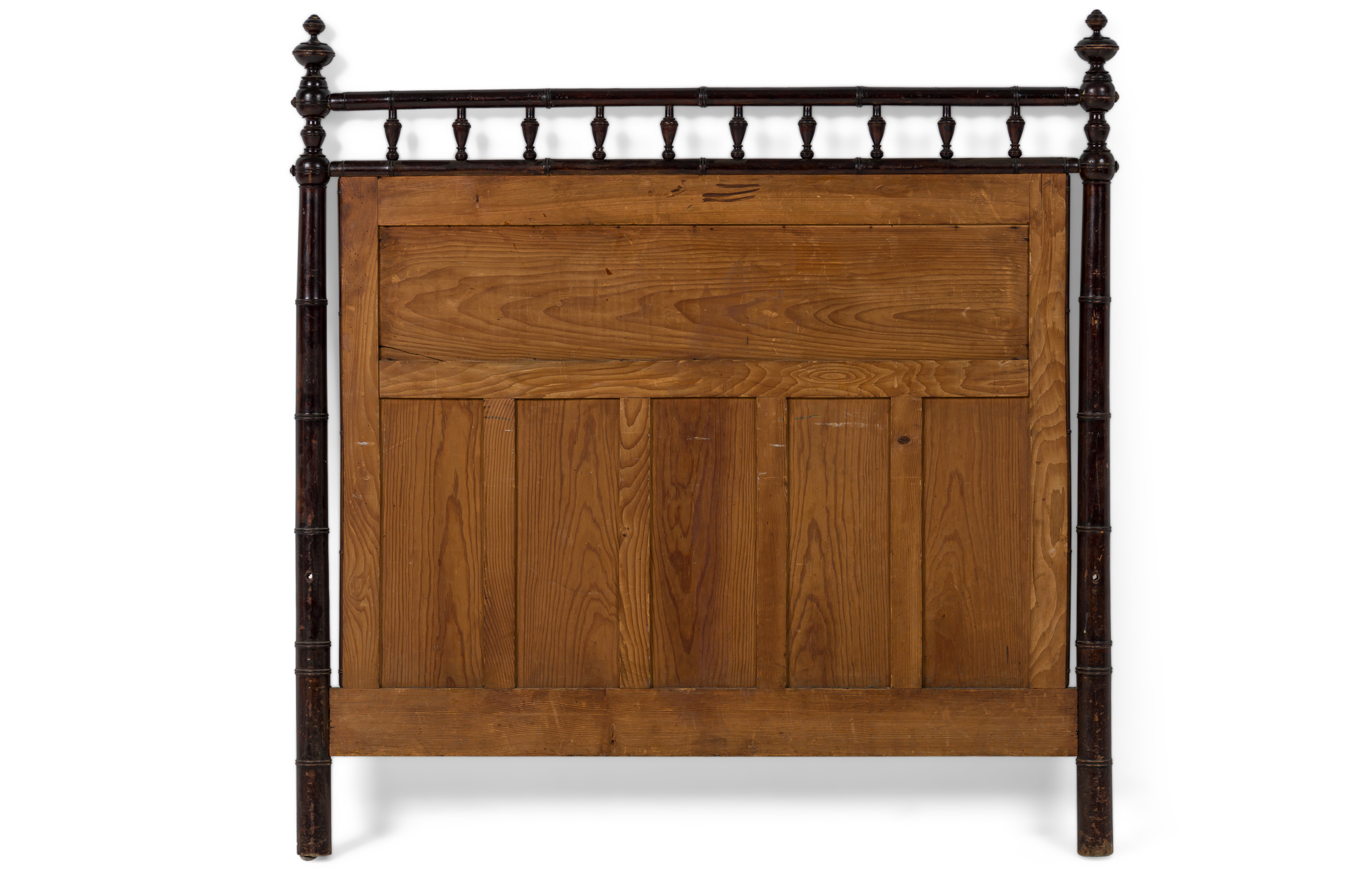 Style: French Materials & Techniques: Bamboo, mahogany, pediment, pine, wood Category: Bedroom, Beds Good; Wear consistent with age and use