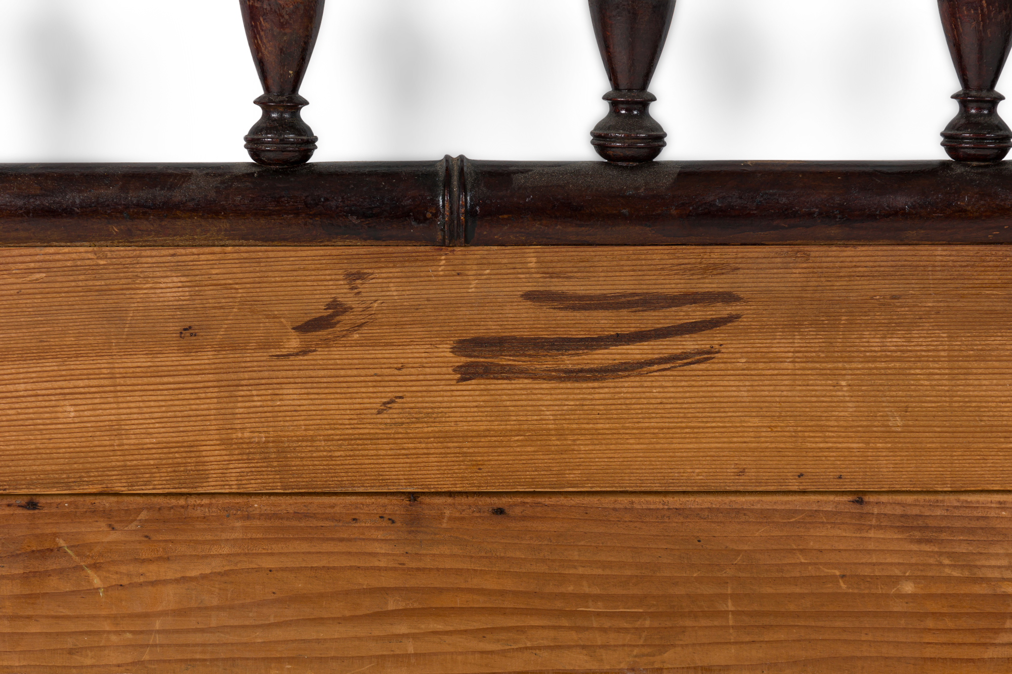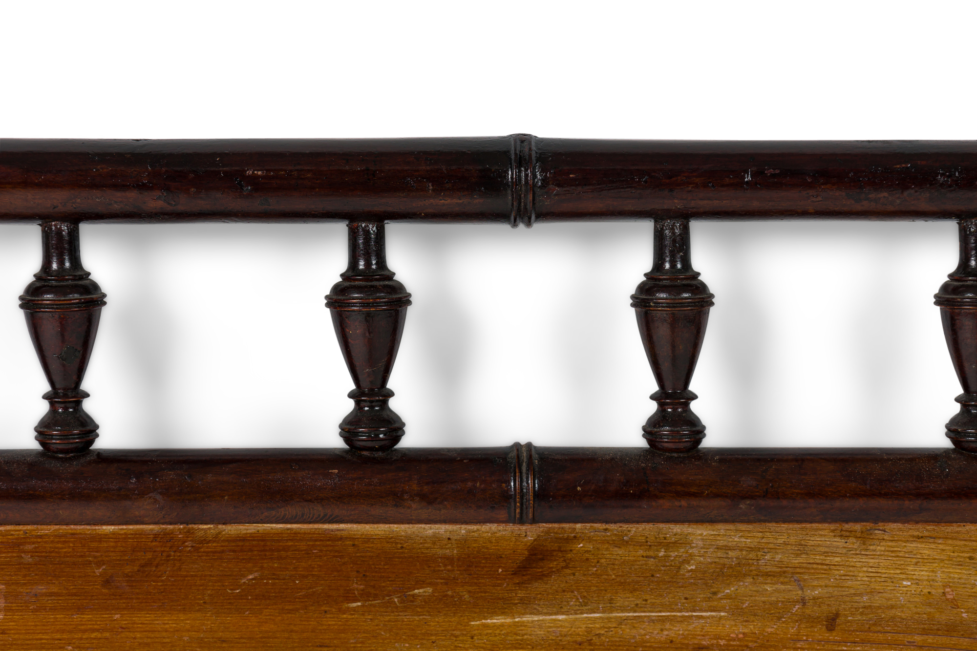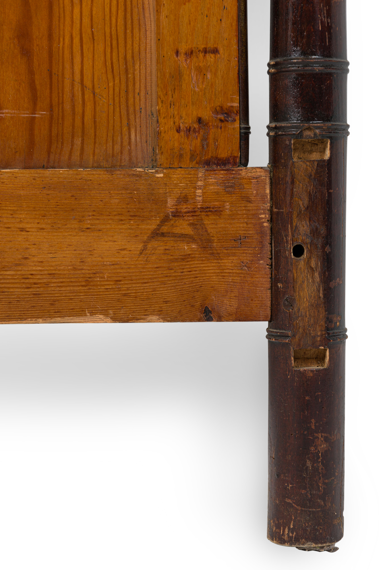 French Victorian faux bamboo pine and mahogany twin size bed trimmed spindle design top (includes: headboard, footboard, and rails) (Irregular size, check measurements)
