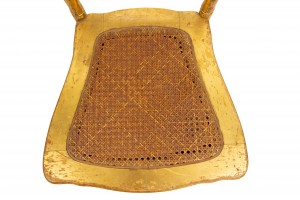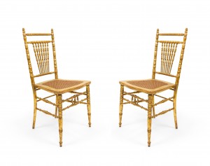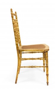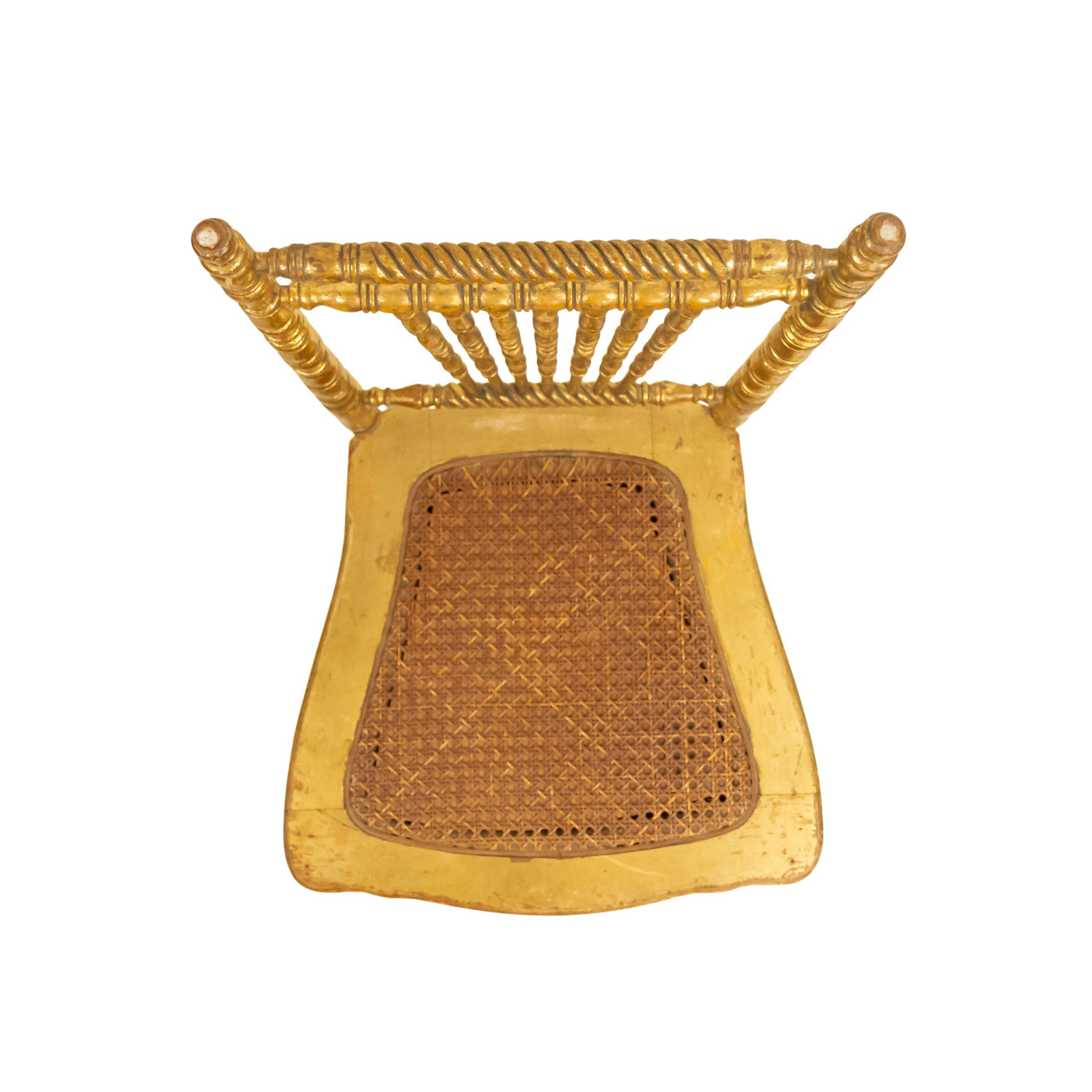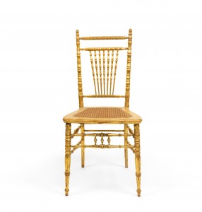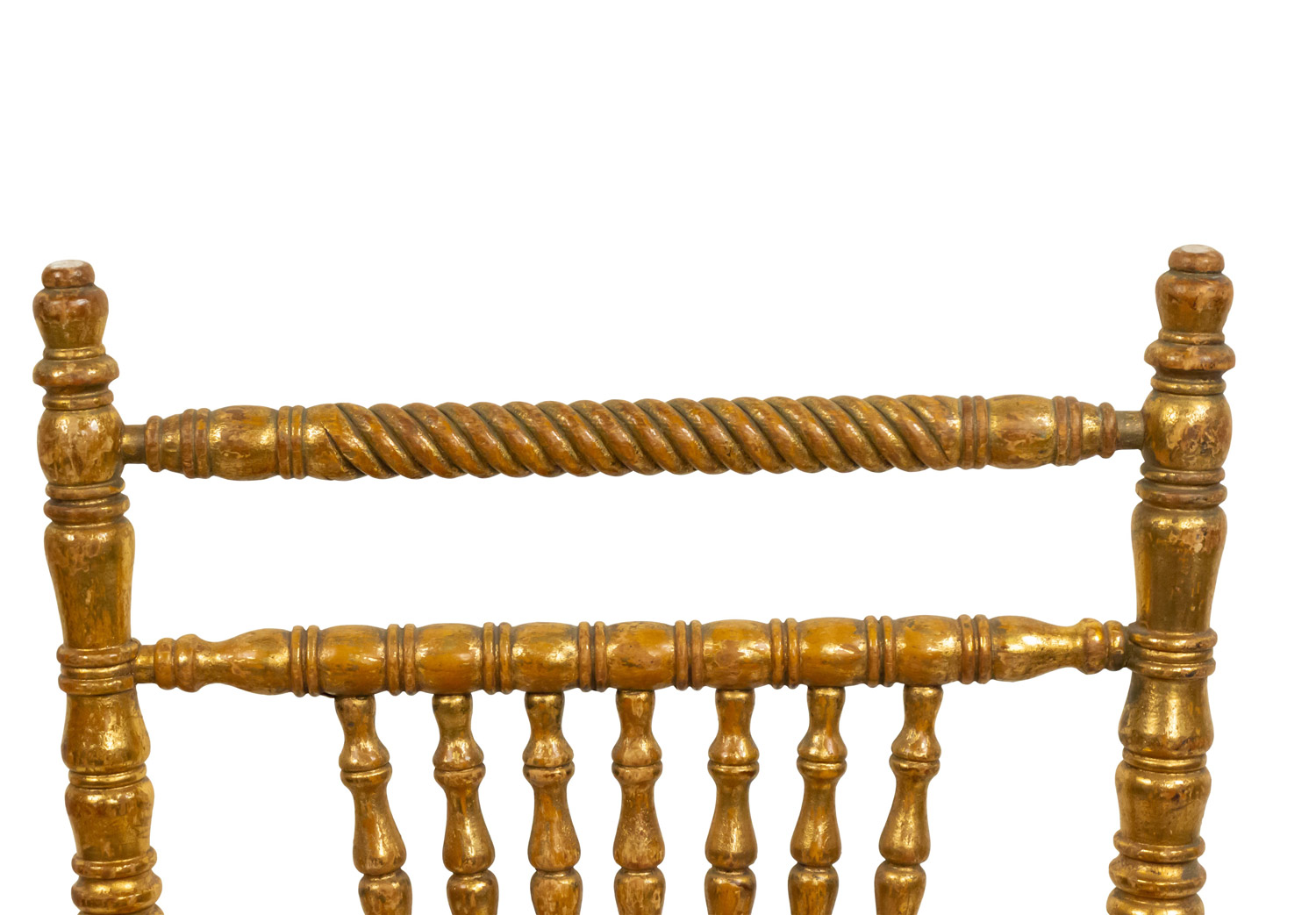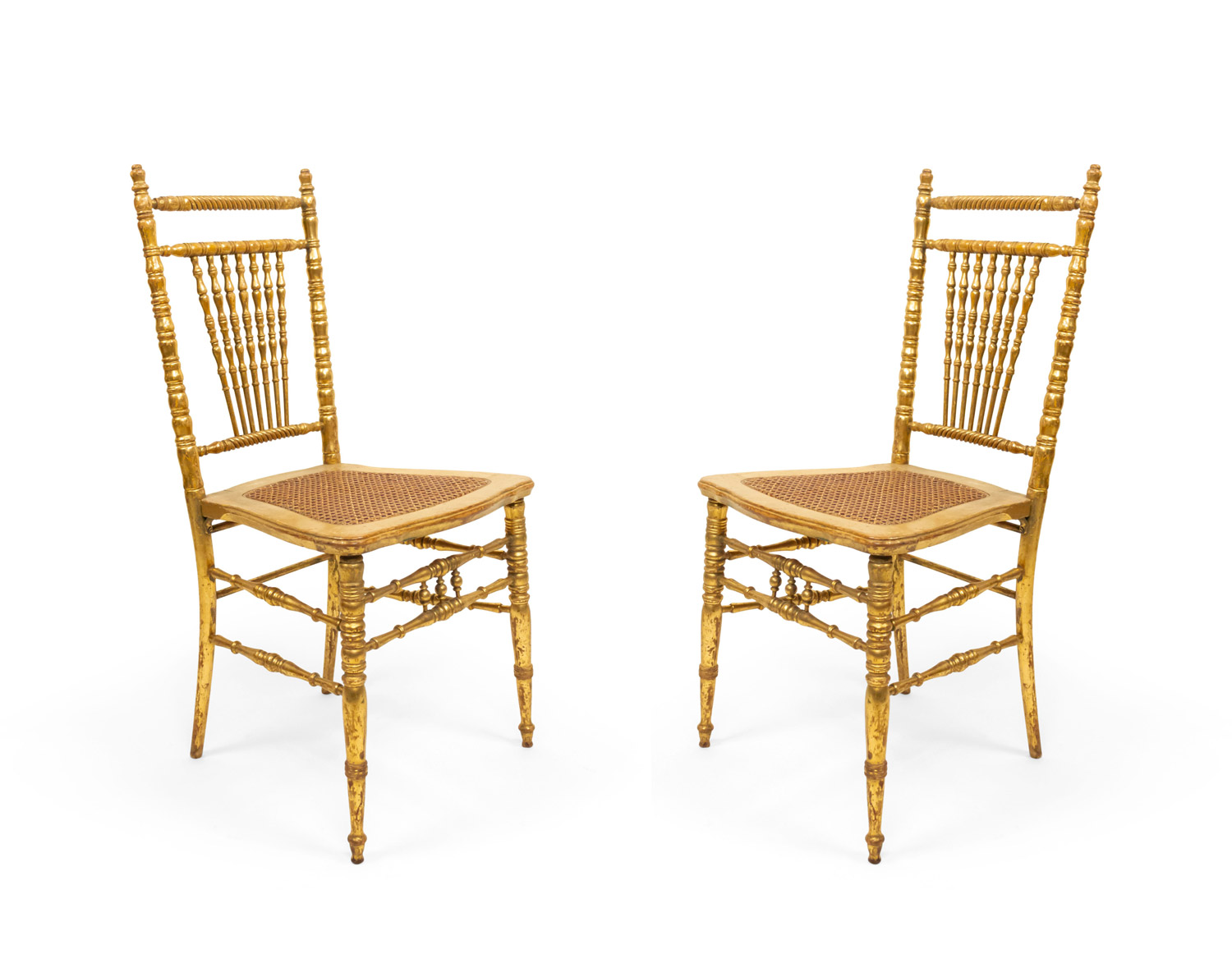 6 French Victorian style (mid-20th Century) gilt ballroom style side chairs with spindle back and twisted top rail with cane seat (PRICED EACH).