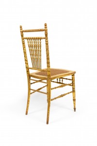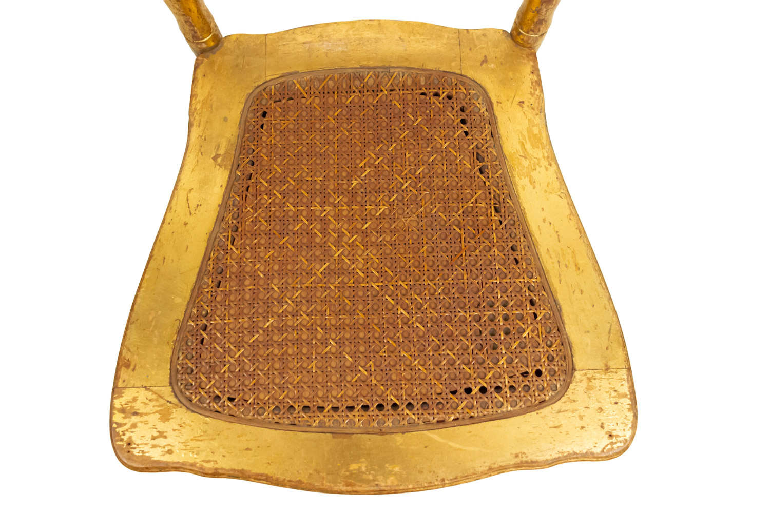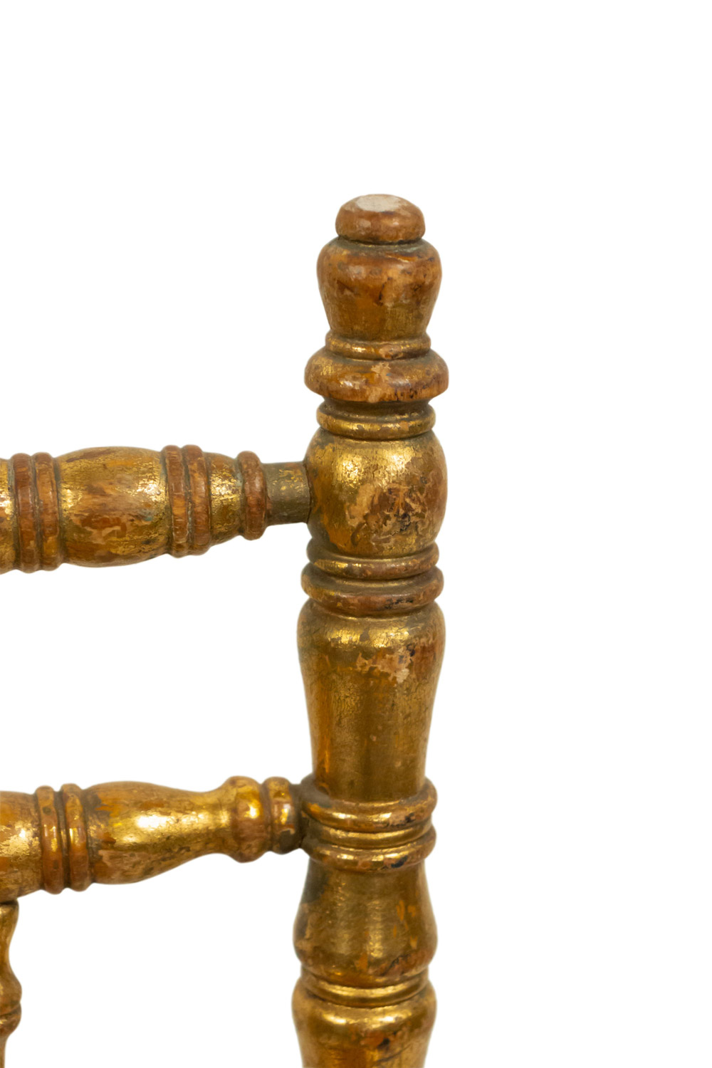 6 French Victorian style (mid-20th Century) gilt ballroom style side chairs with spindle back and twisted top rail with cane seat (PRICED EACH)