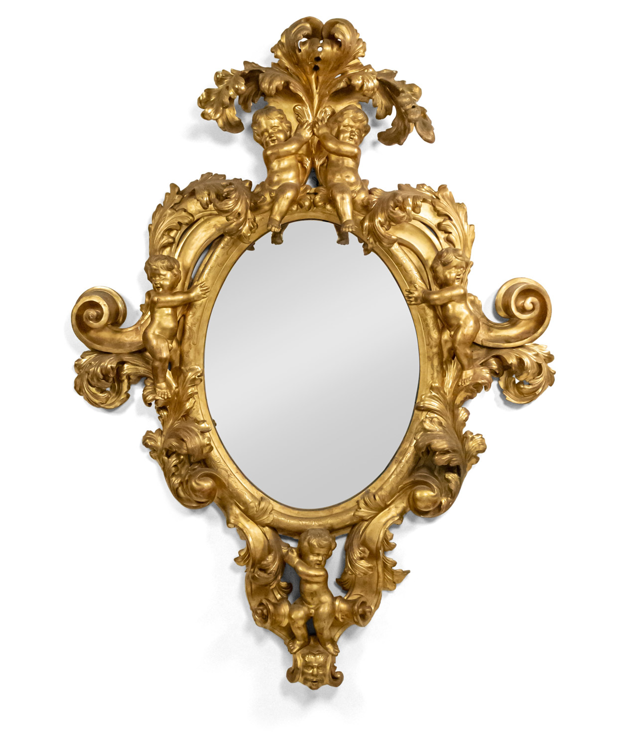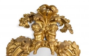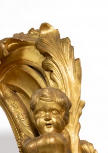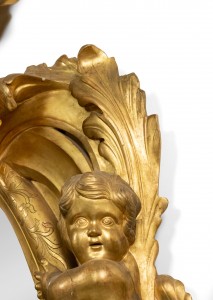 French Victorian Monumental Carved Giltwood Cupid Design Wall Mirror