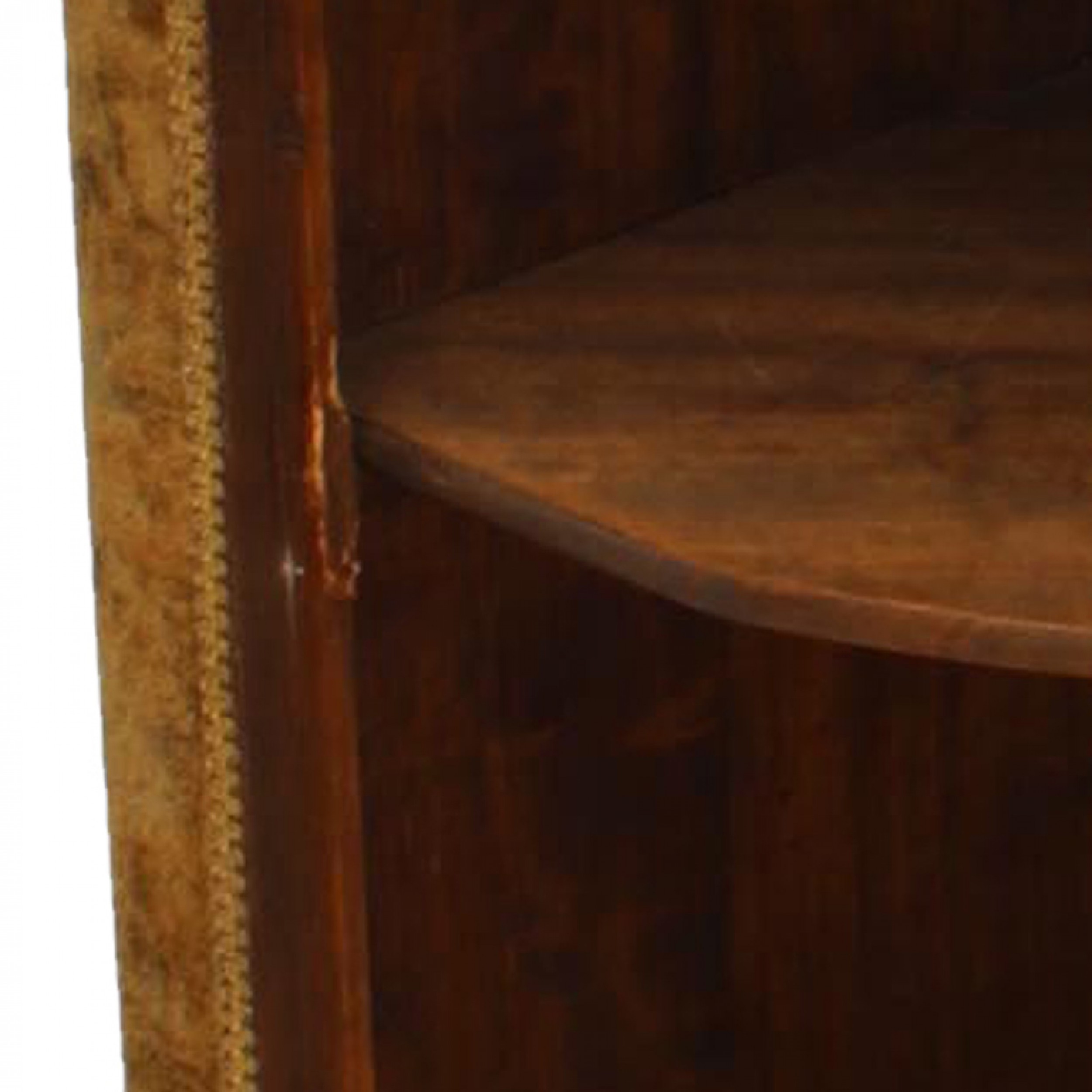 French Victorian-style green velvet upholstered corner commode cabinet with needlepoint front door panel.