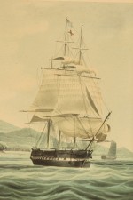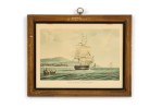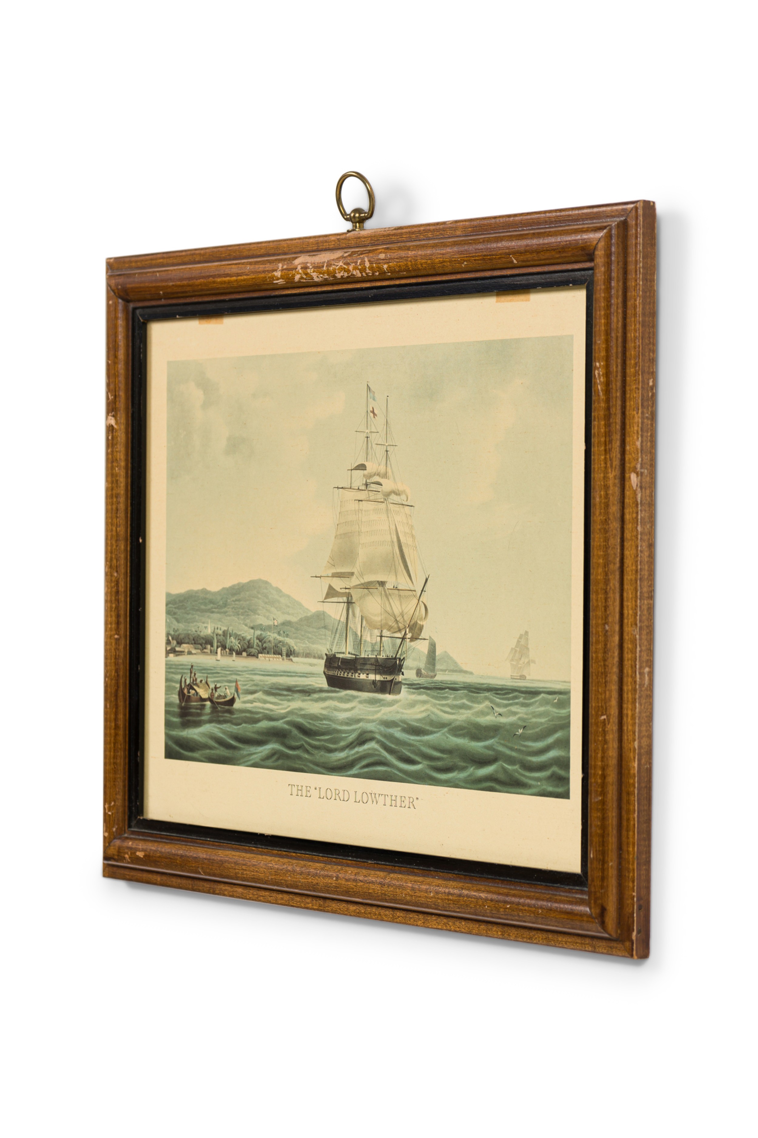 French Victorian Lithograph of a Large Boat and Two Row Boats