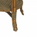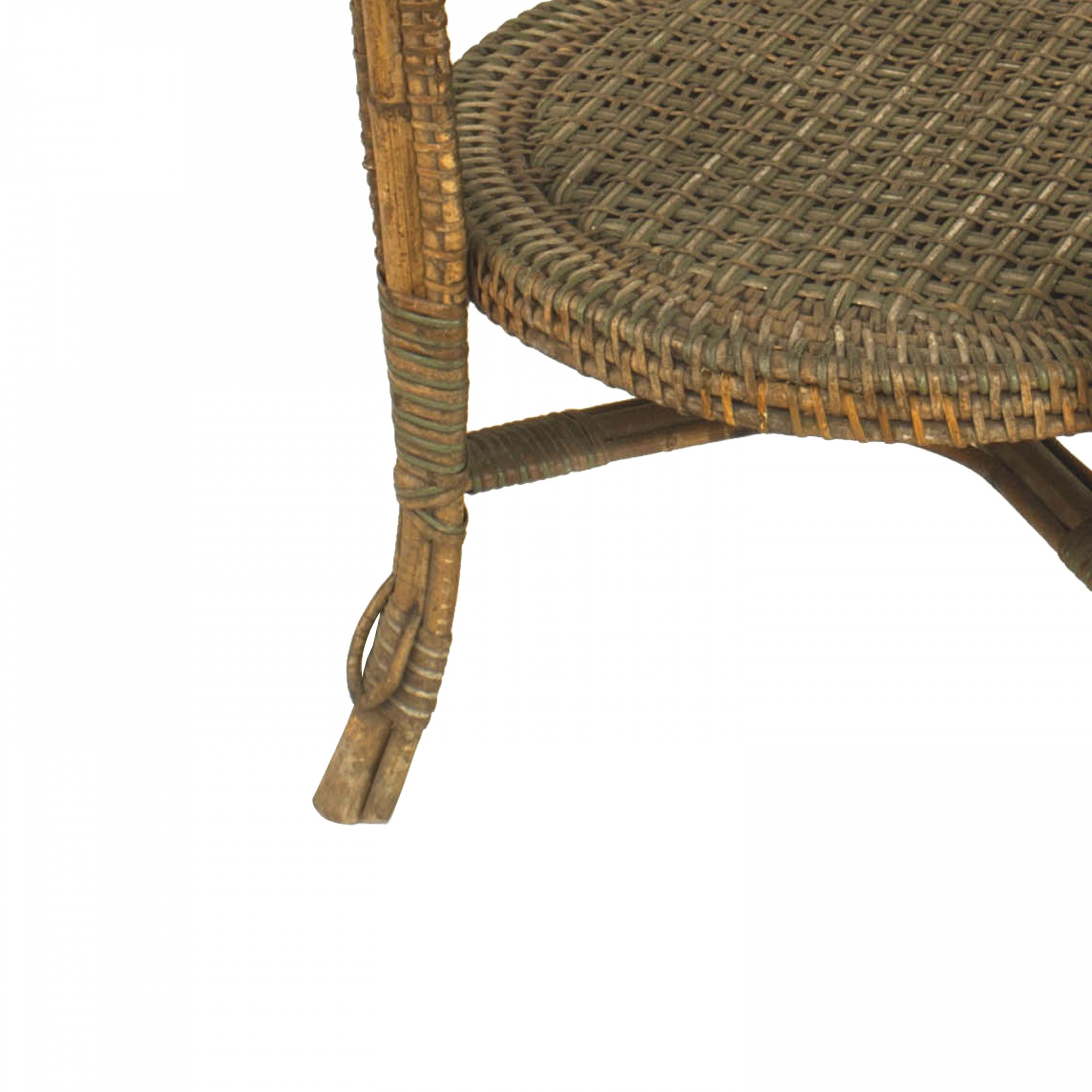 French Victorian natural wicker round end table with a shelf trimmed with green & white wrapping (PERET & VIBERT metal label)(Related item: loveseat 060664).