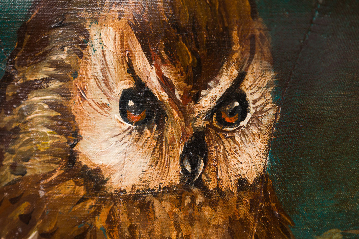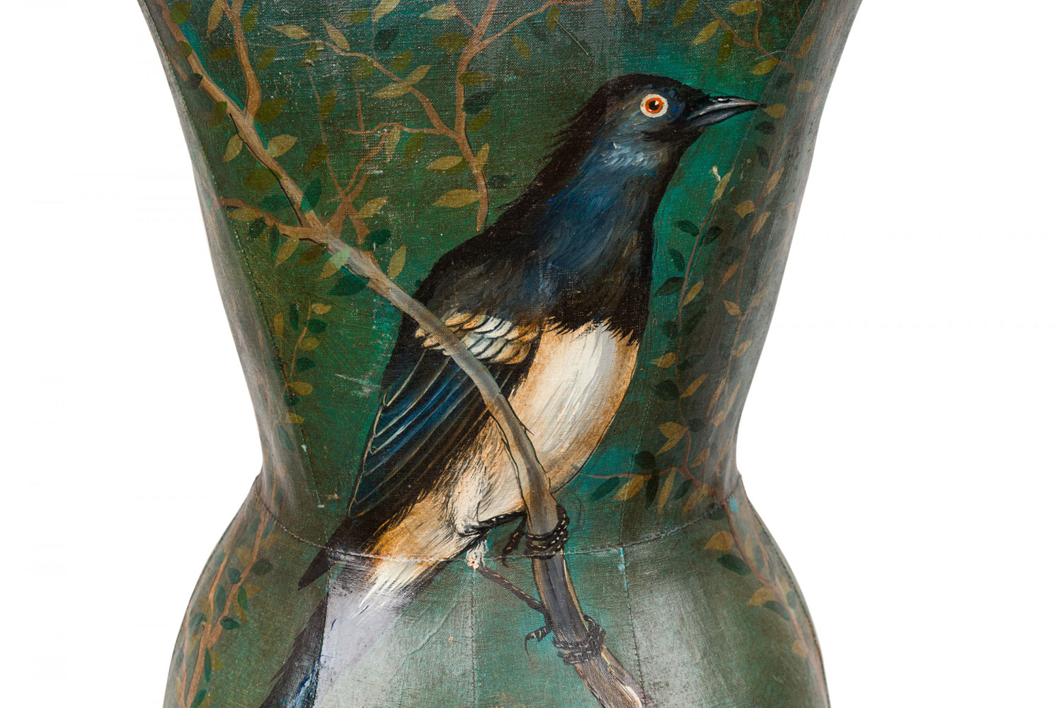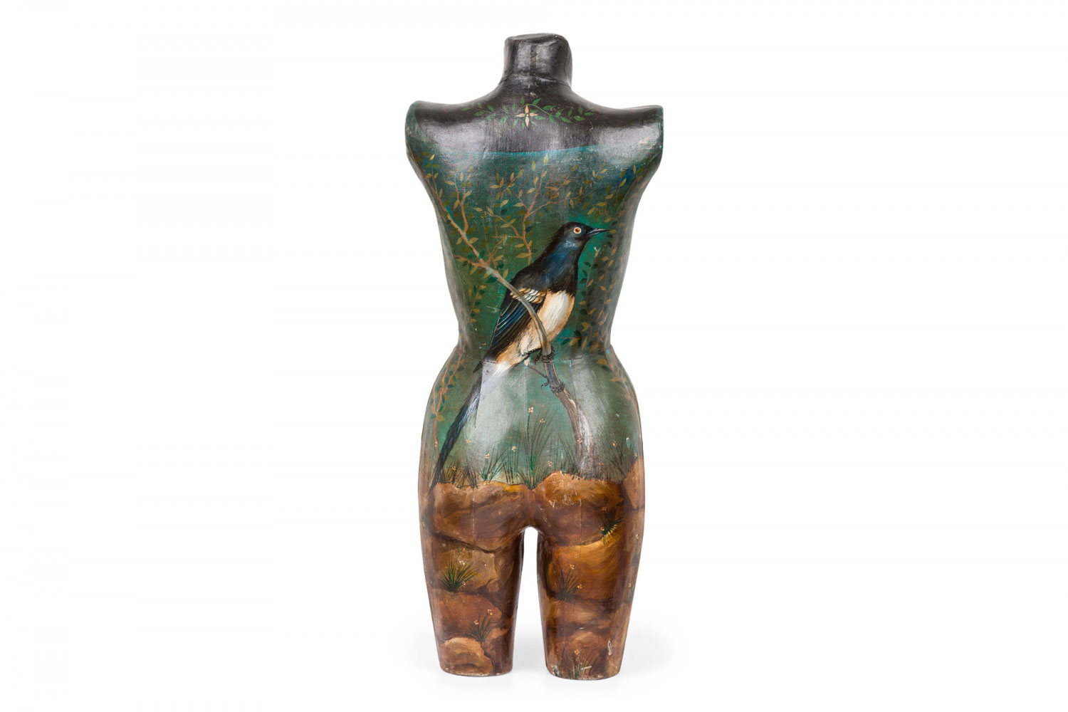 French Victorian style painted mannequin figure with legs and owl design (20th Cent)