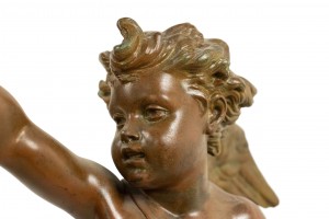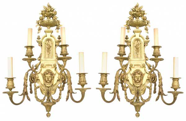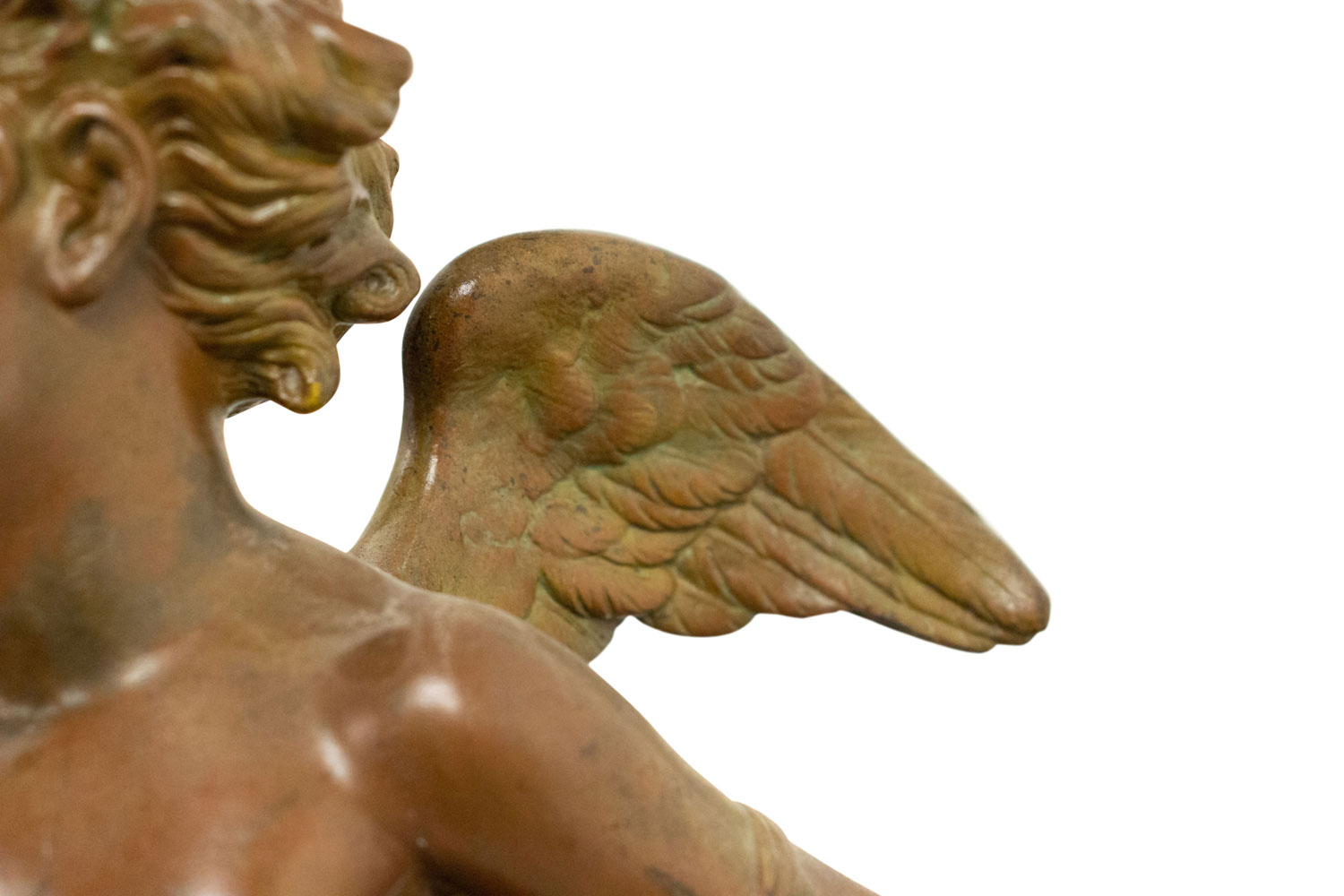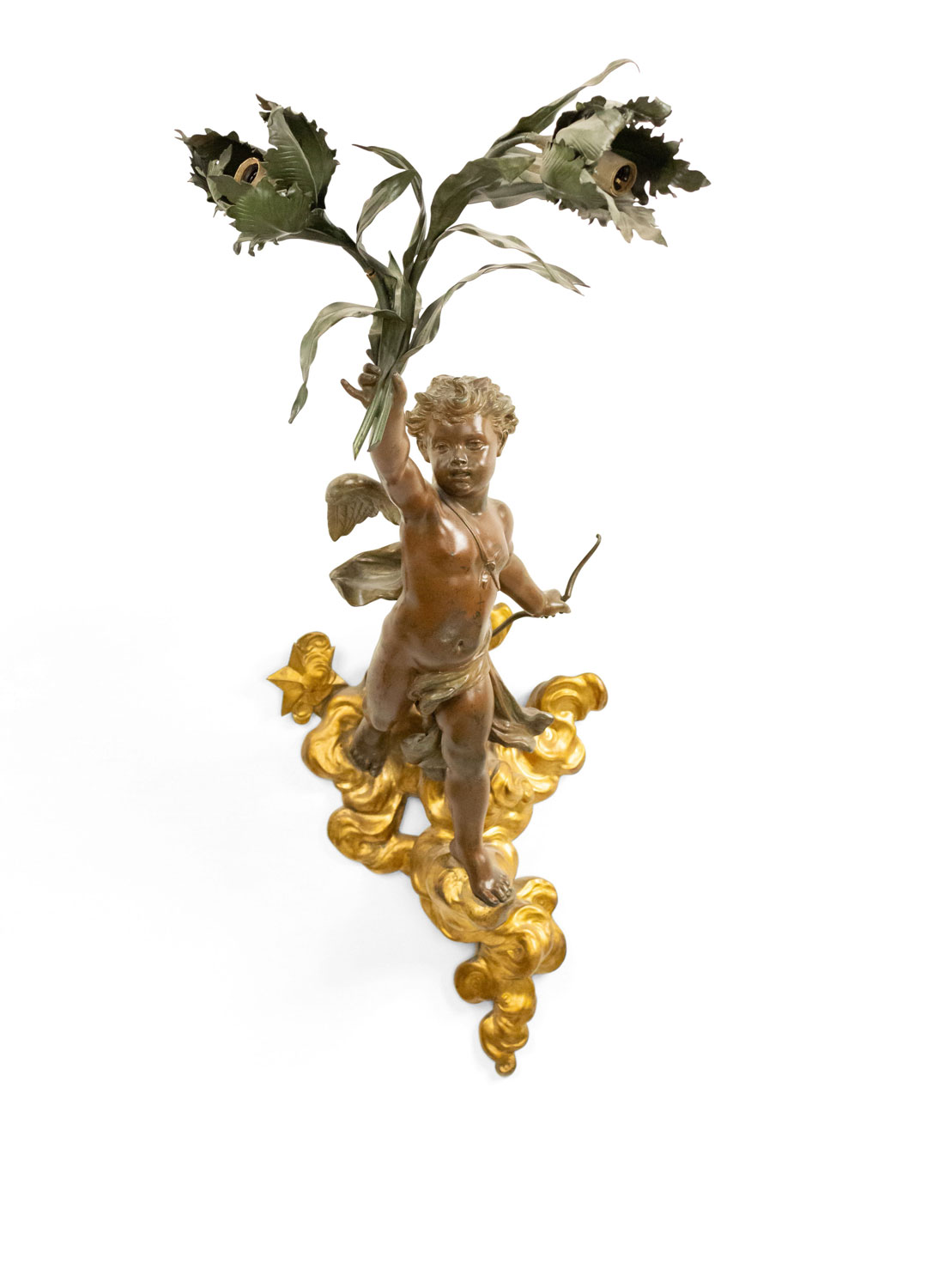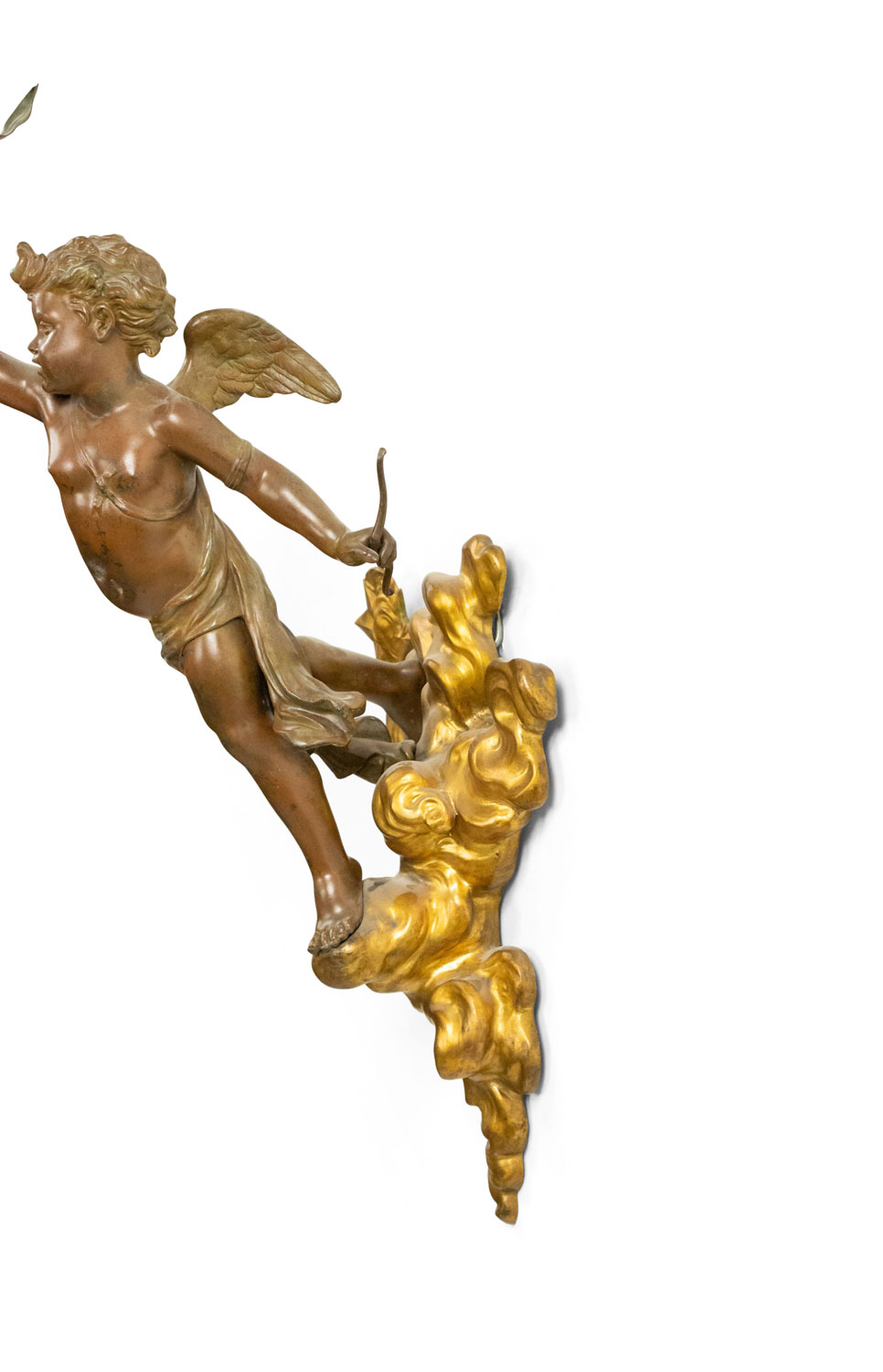 Pair of French Victorian Patinated Brass Cupid Wall Sconces