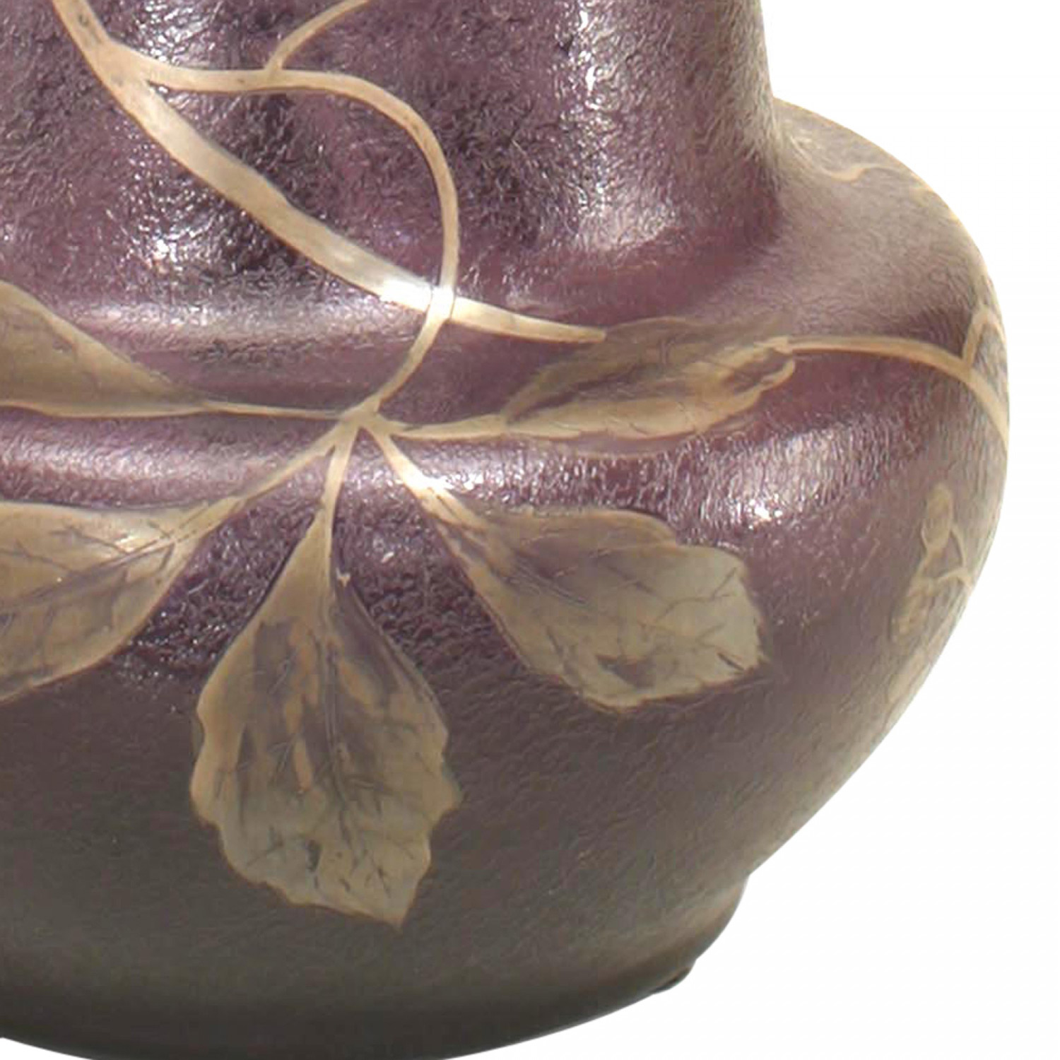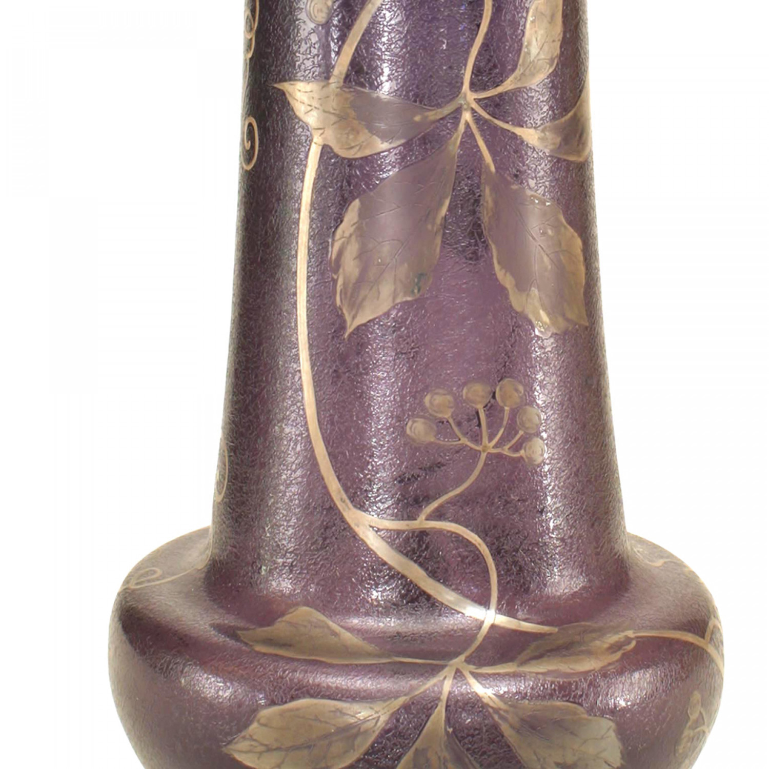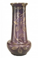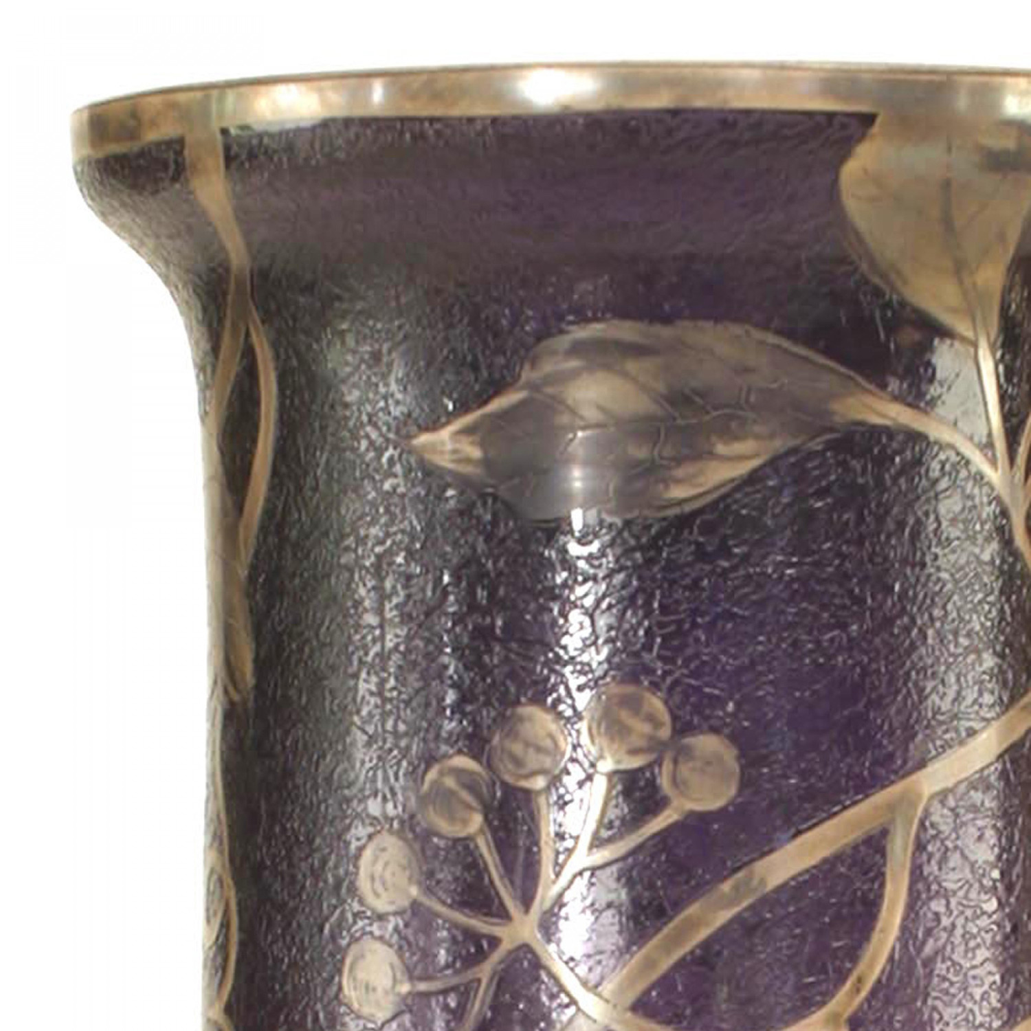 French Victorian bulbous shaped purple glass vase with floral silver deposit design..