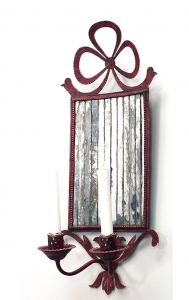Pair of French Victorian Red Tole and Mirror Bow Knot Wall Sconces