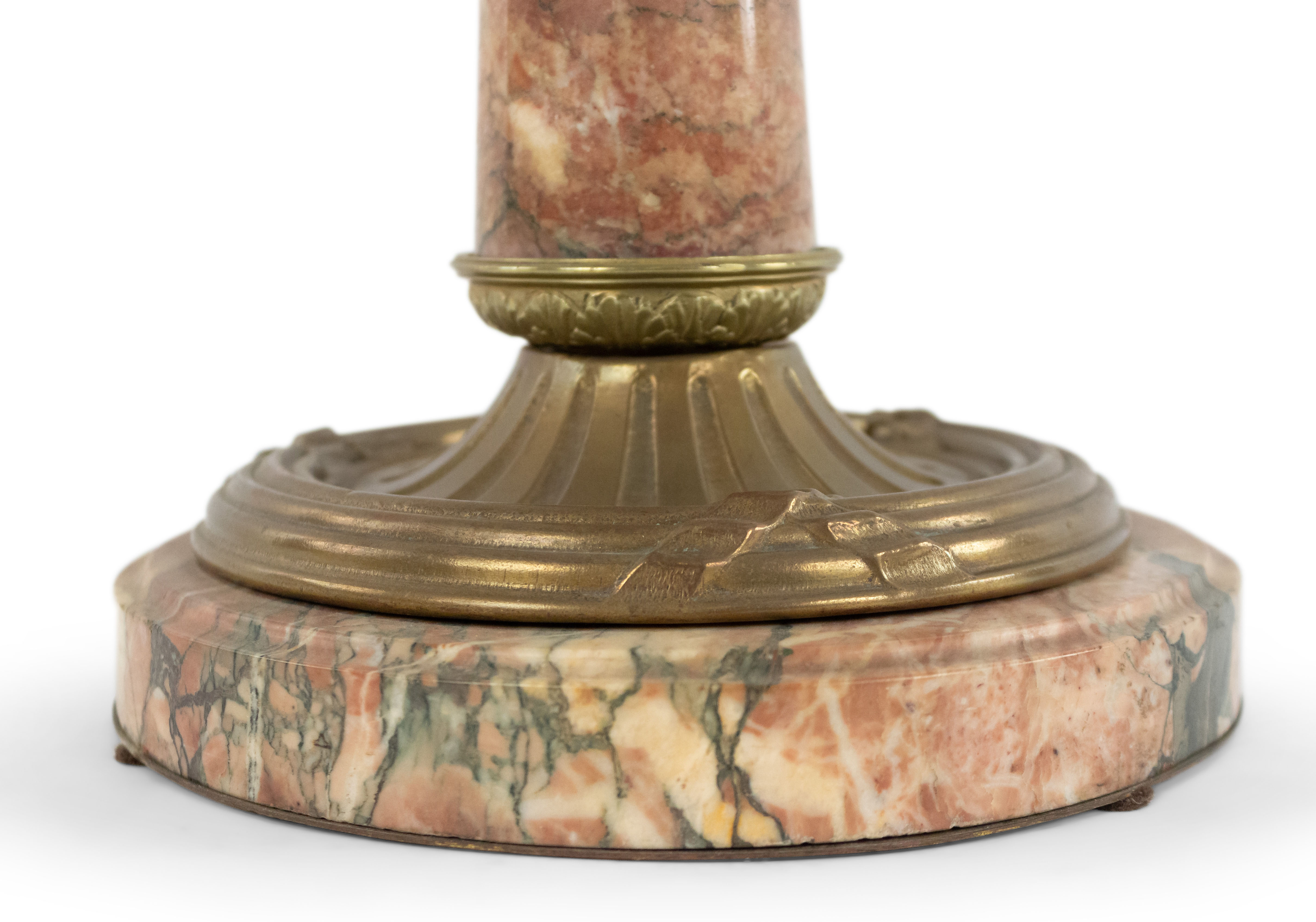 French Victorian (19th/20th Cent) rouge marble column lamp with gilt mounts on top and base and mounted on a round marble base.