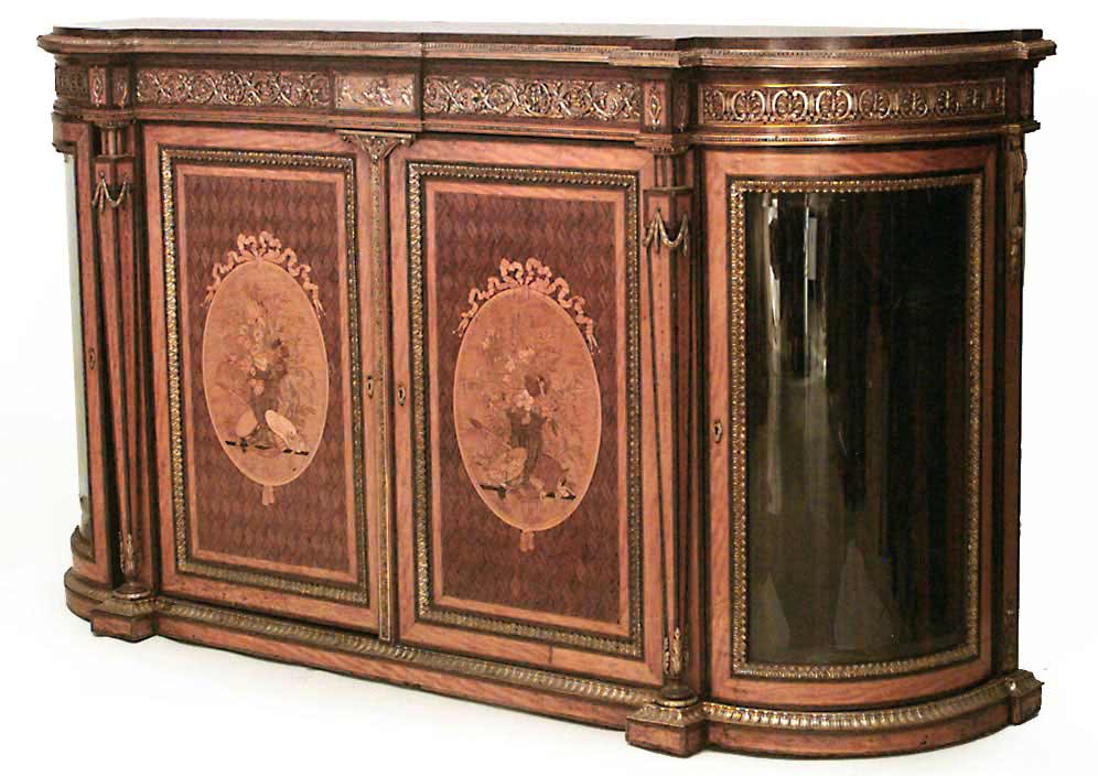 Style: French Materials & Techniques: Glass, wood, bronze, satinwood, inlaid Category: Cabinets & Case Goods, Dining Room