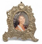 French Victorian sterling silver easel picture frame with embossed cupids and scroll design..