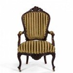 Style: French Materials & Techniques: Carved, crest, rosewood, velvet, wood Category: Seating