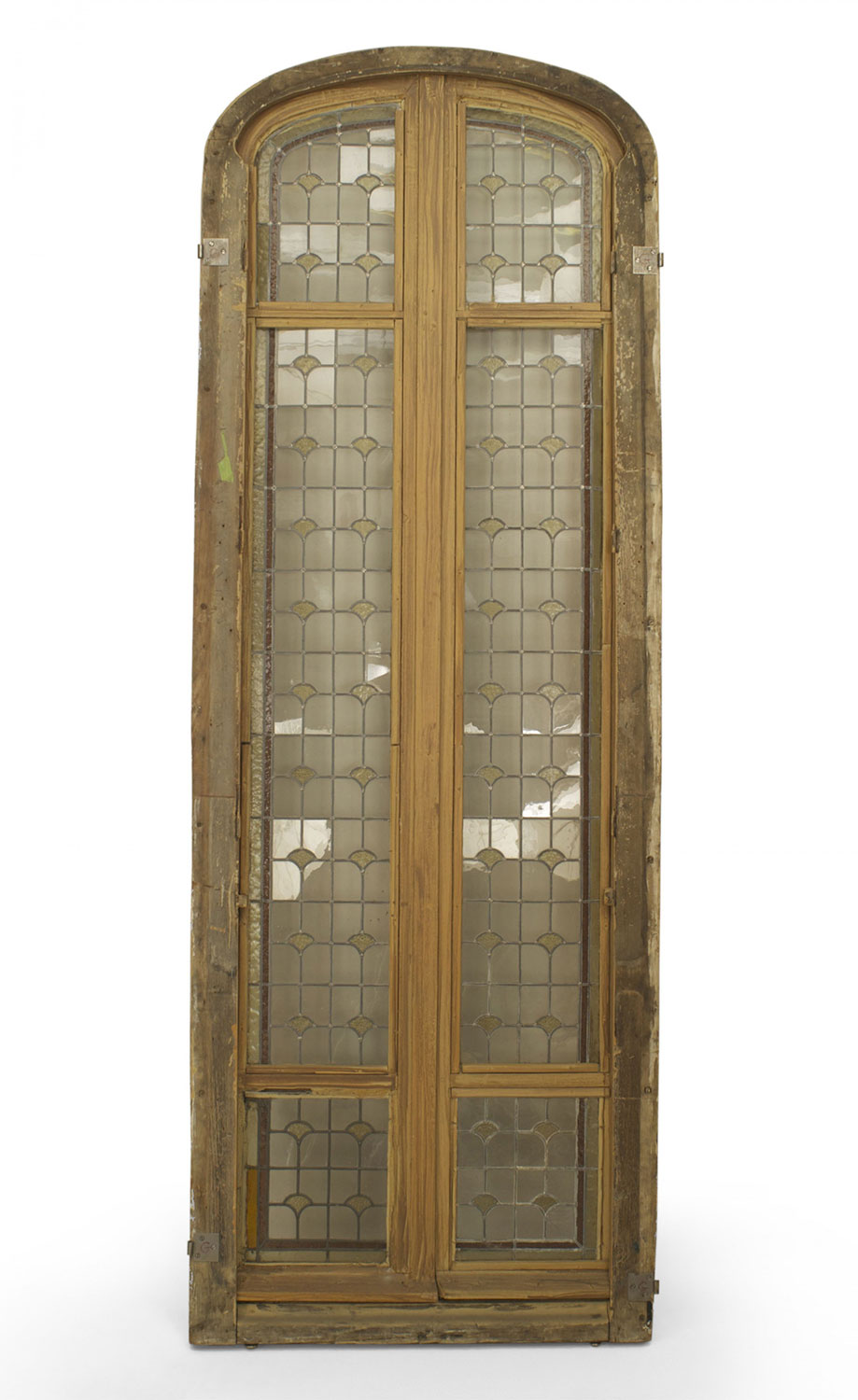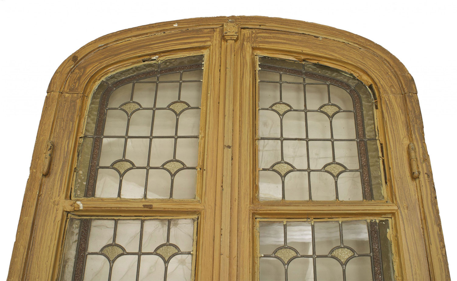 3 PAIR of French Victorian stripped arch top doors with leaded glass panels and locks (PRICED PER PAIR)..