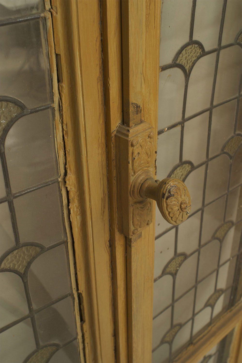 3 PAIR of French Victorian stripped arch top doors with leaded glass panels and locks (PRICED PER PAIR).