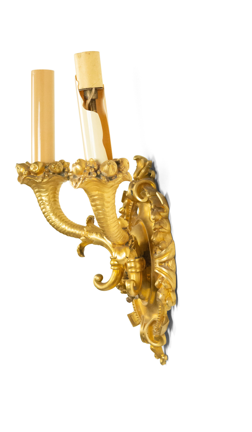 French Victorian Style Bronze Dore Cornucopia Wall Sconce