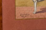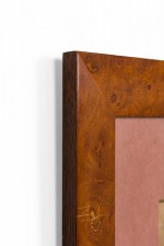 Georges Busson Art Deco Foxhound Dog Watercolor in a Burl Wood Frame