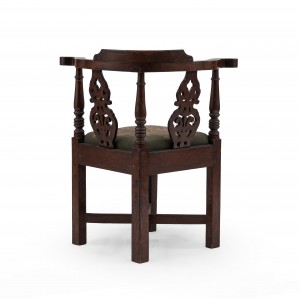 Style: English Materials & Techniques: Wood, oak, fabric, needlepoint Category: Seating