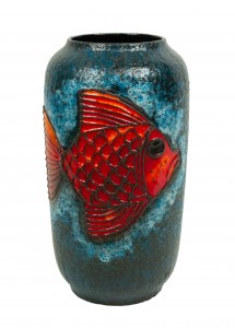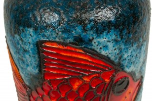German Blue and Orange Ceramic Fish Design Vase