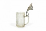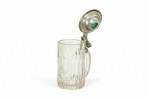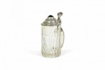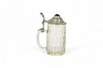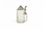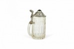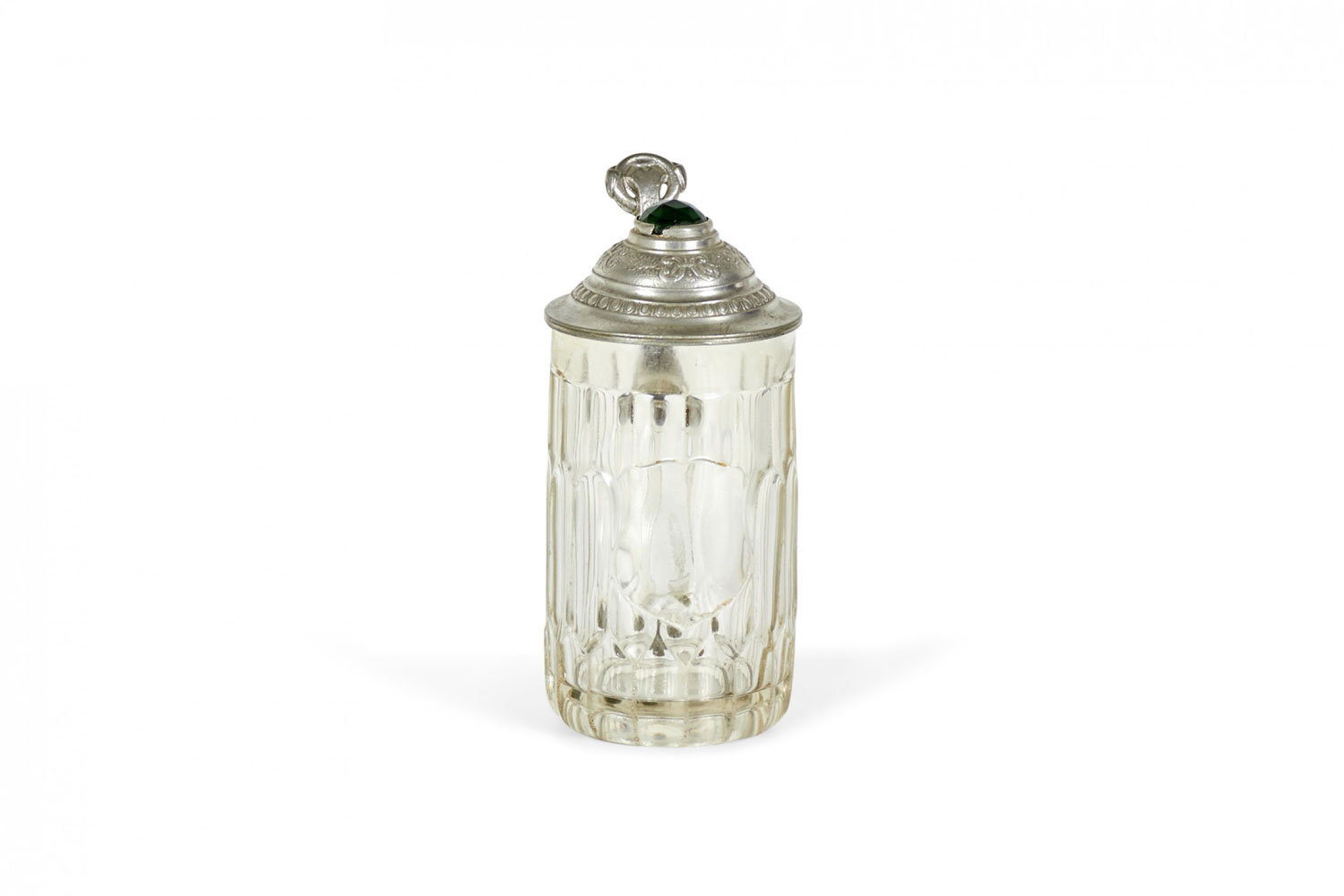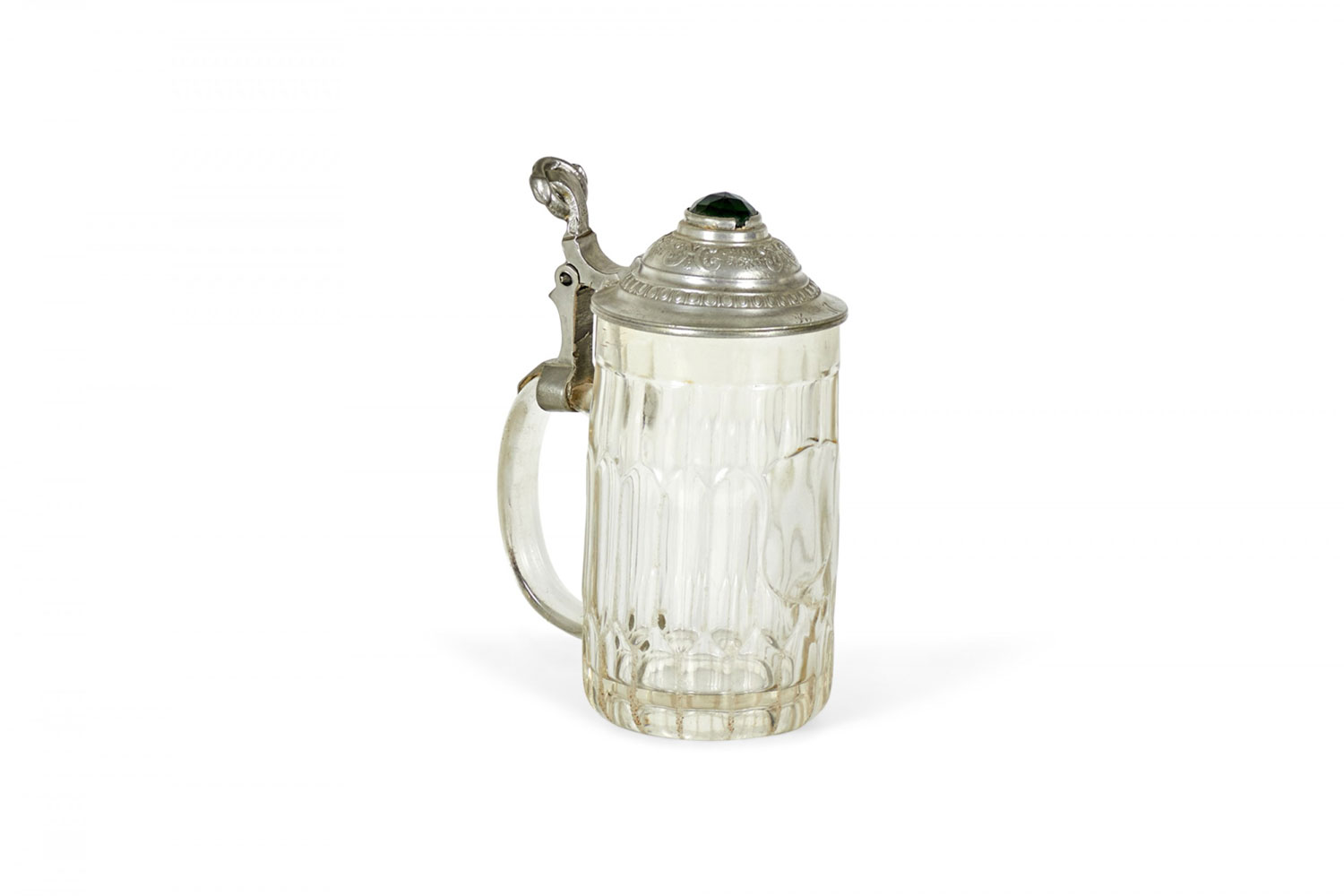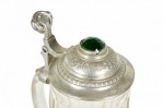 German (19/20th Century) crystal beer stein with pewter cover and green glass jewel top