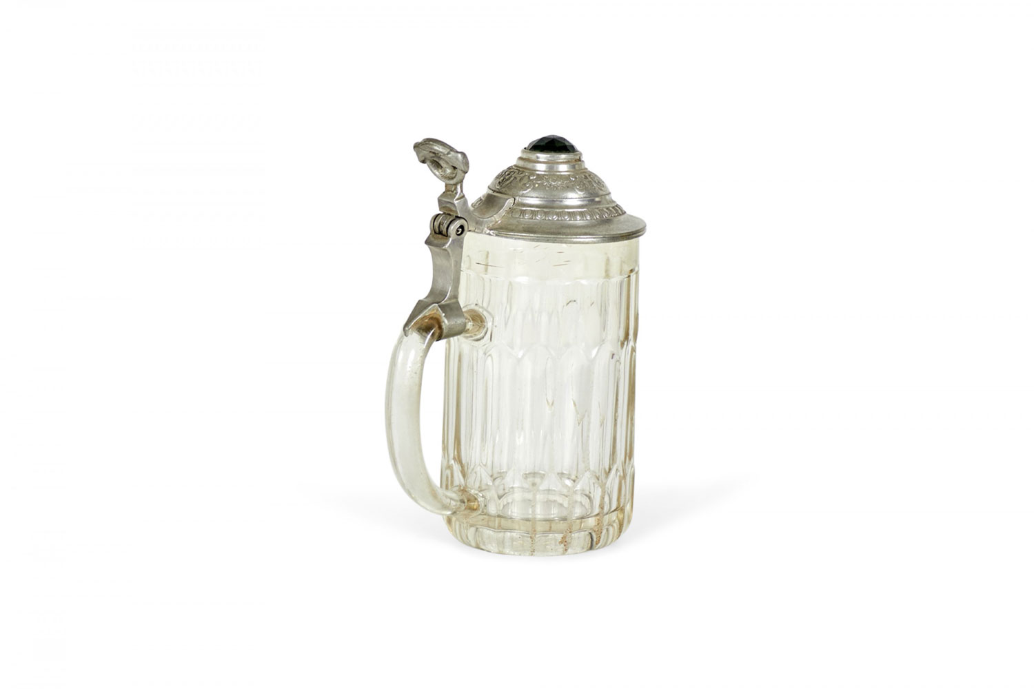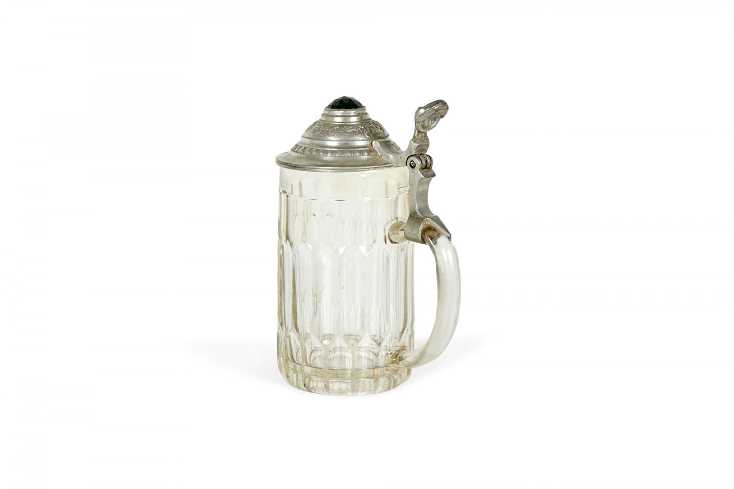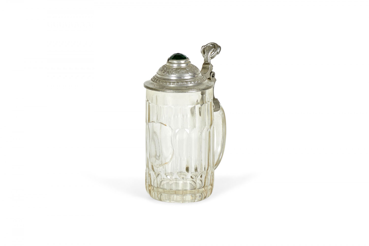 German (19/20th Century) crystal beer stein with pewter cover and green glass jewel top.