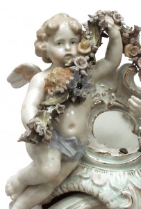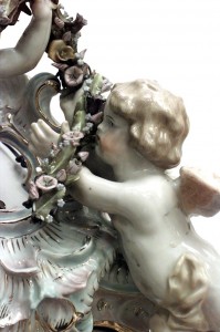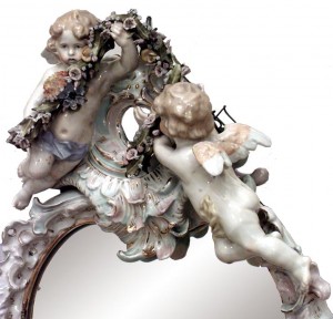 German Dresden Porcelain Cherub and Garland Wall Mirror