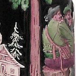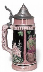 German ((late 19th Century-possibly by ADOLF DIESINGER) porcelain beer stein with 2 winter scenes and 3 figures with pewter cover (Estate of Robert Ripley).