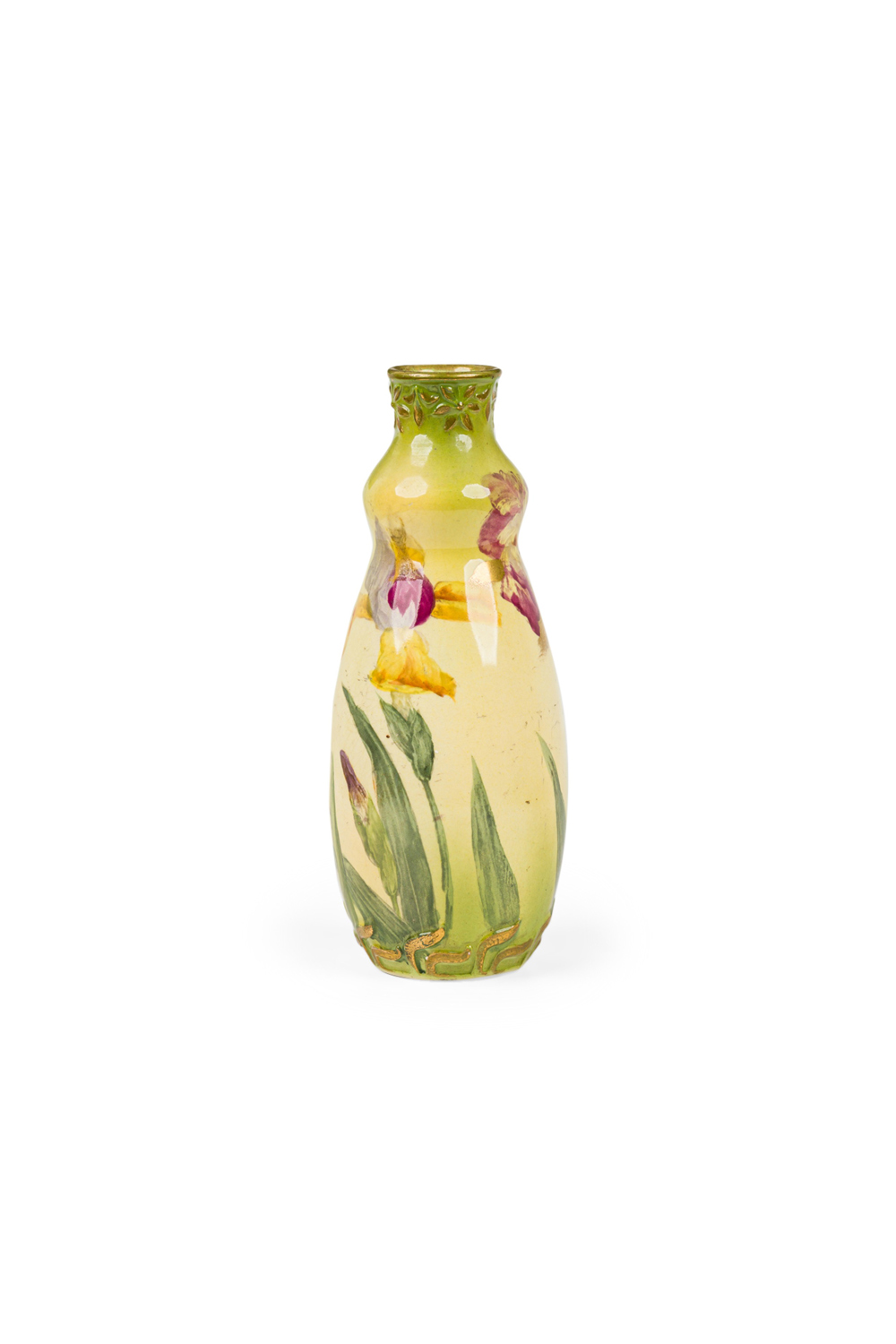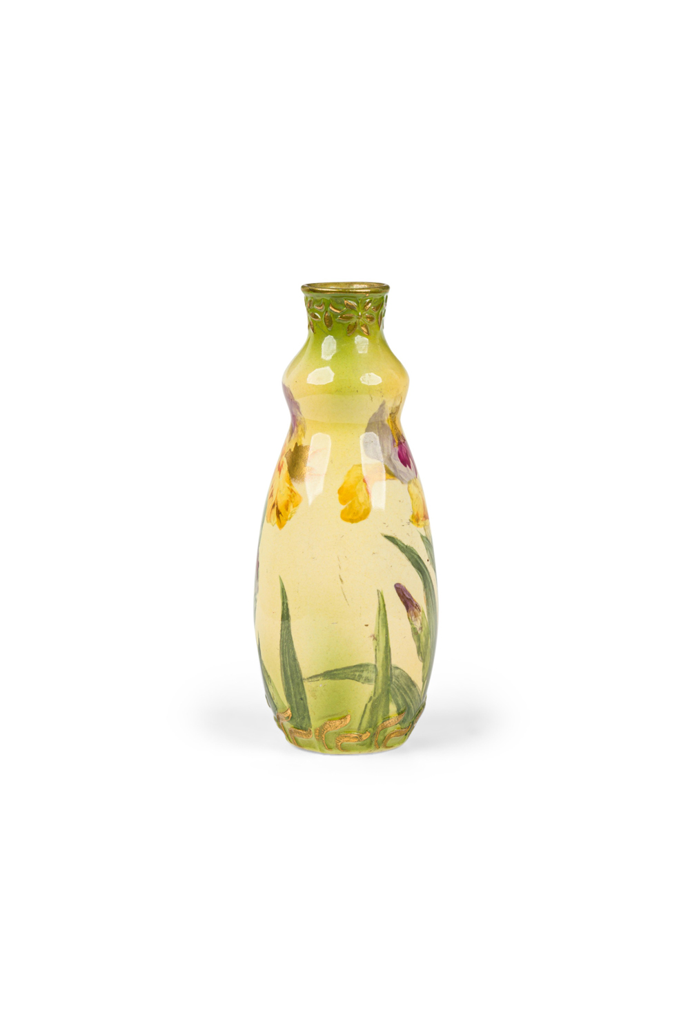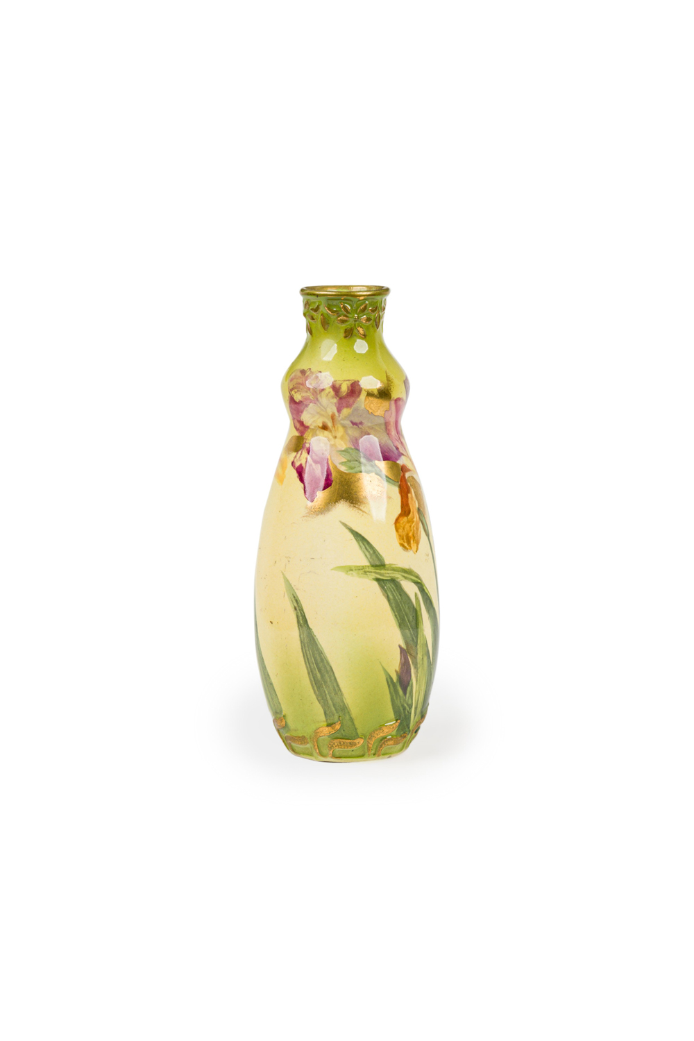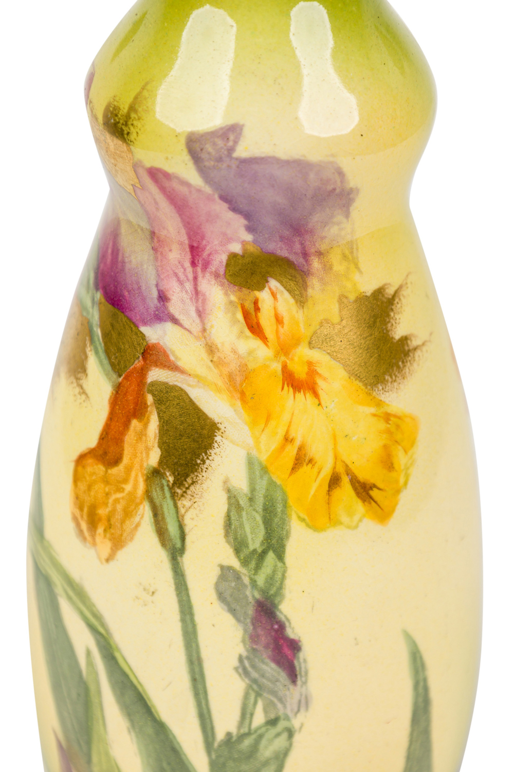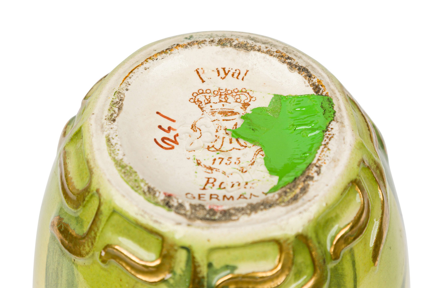 German (19th Cent) Royal Bonn yellow porcelain shaped vase with floral design..