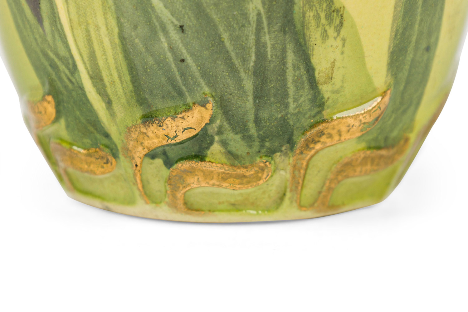 German (19th Cent) Royal Bonn yellow porcelain shaped vase with floral design.