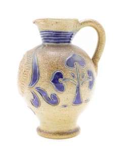 German Stoneware Pitcher with Incised Blue Decorations