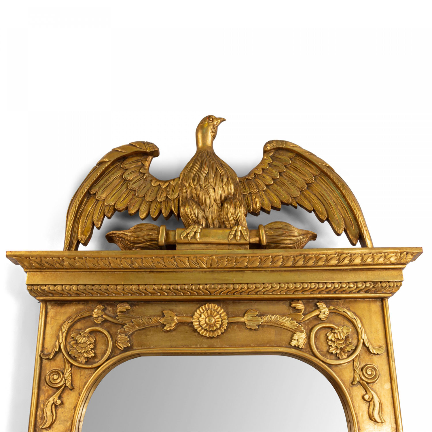 American Federal Carved Giltwood Eagle Pediment Wall Mirror