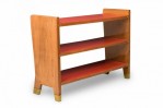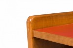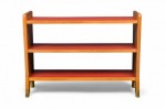 Italian Mid-Century (1950s) small 3-shelf fruitwood bookcase with red leather shelf covers. (GIO PONTI)