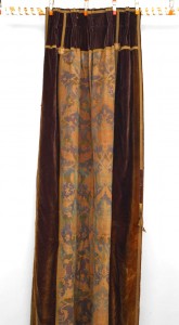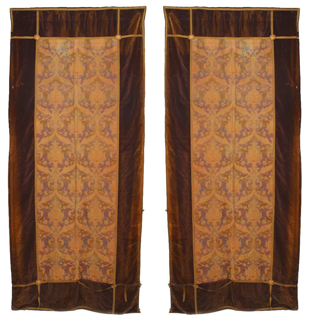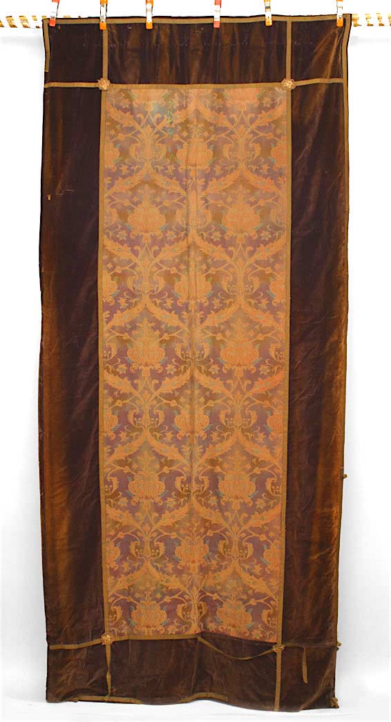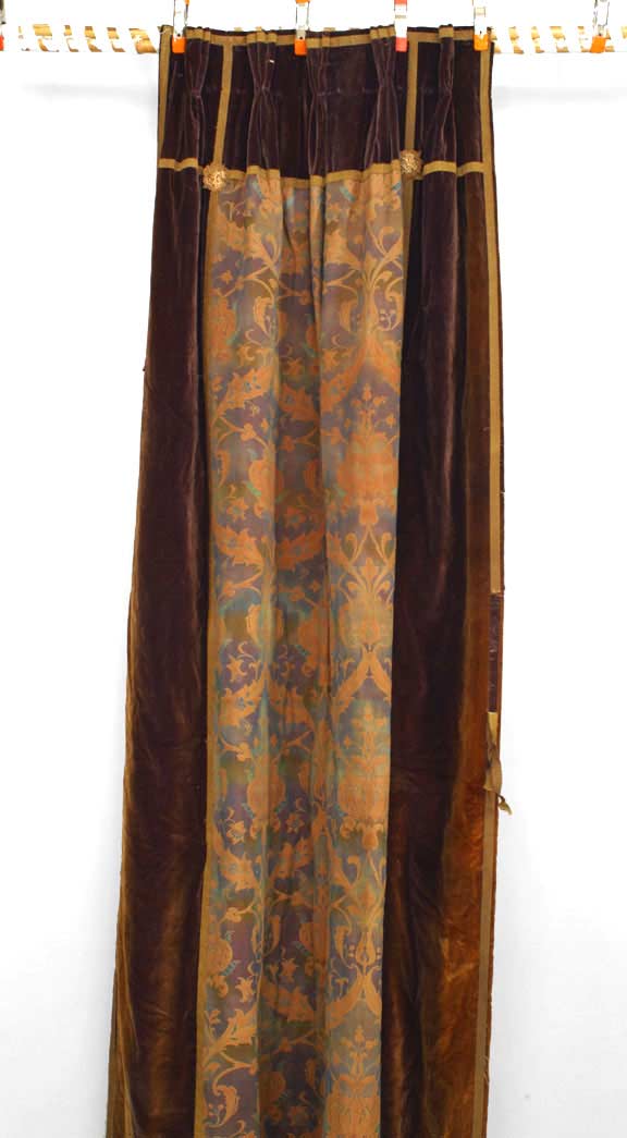 Set of 4 Renaissance Style Gold and Brown Brocade Velvet Drapes