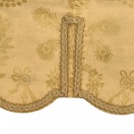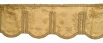 PAIR of similar gold damask drapery valances with braided trim, one is 41"H x 23"W other is 41"H x 11"W (PRICED AS PAIR)..
