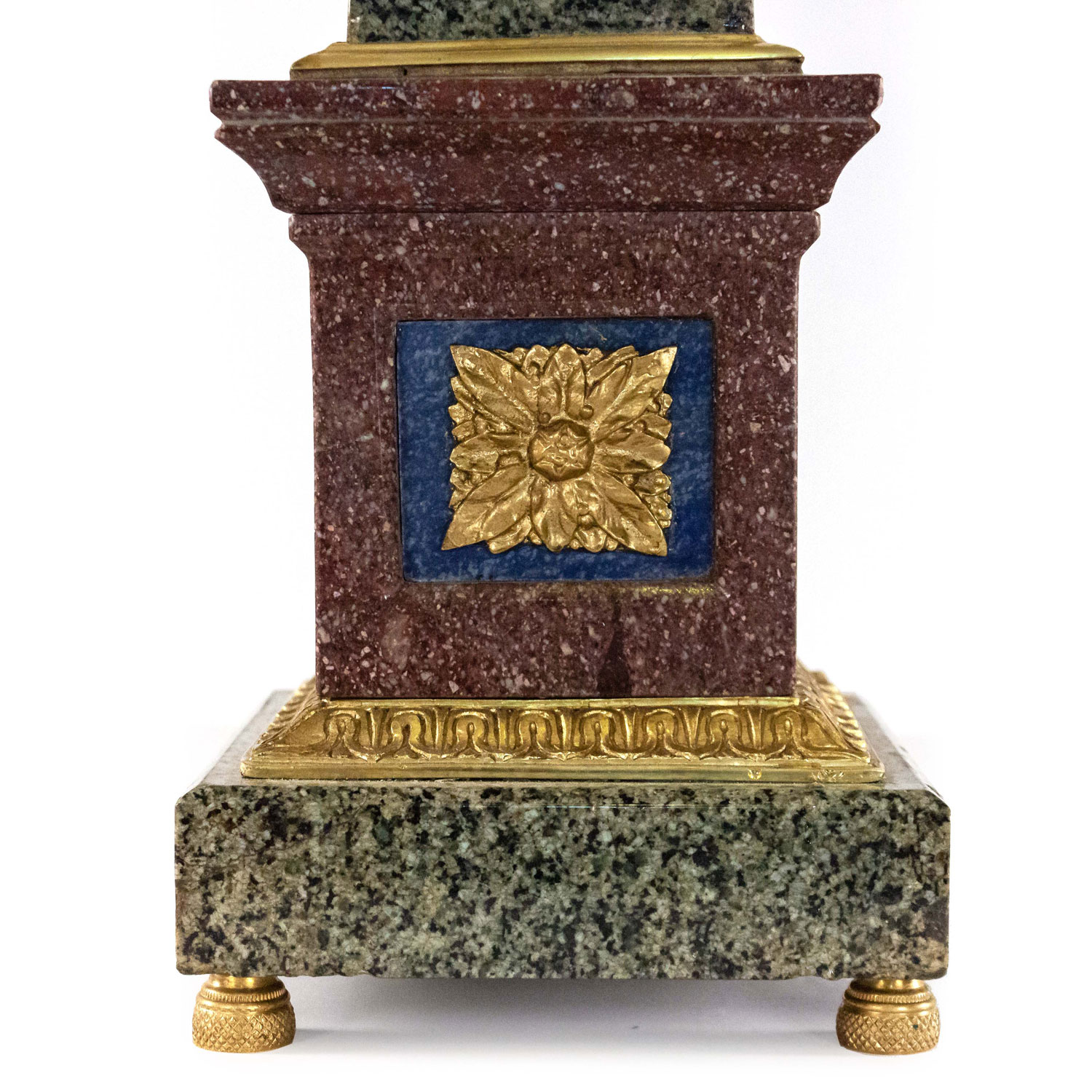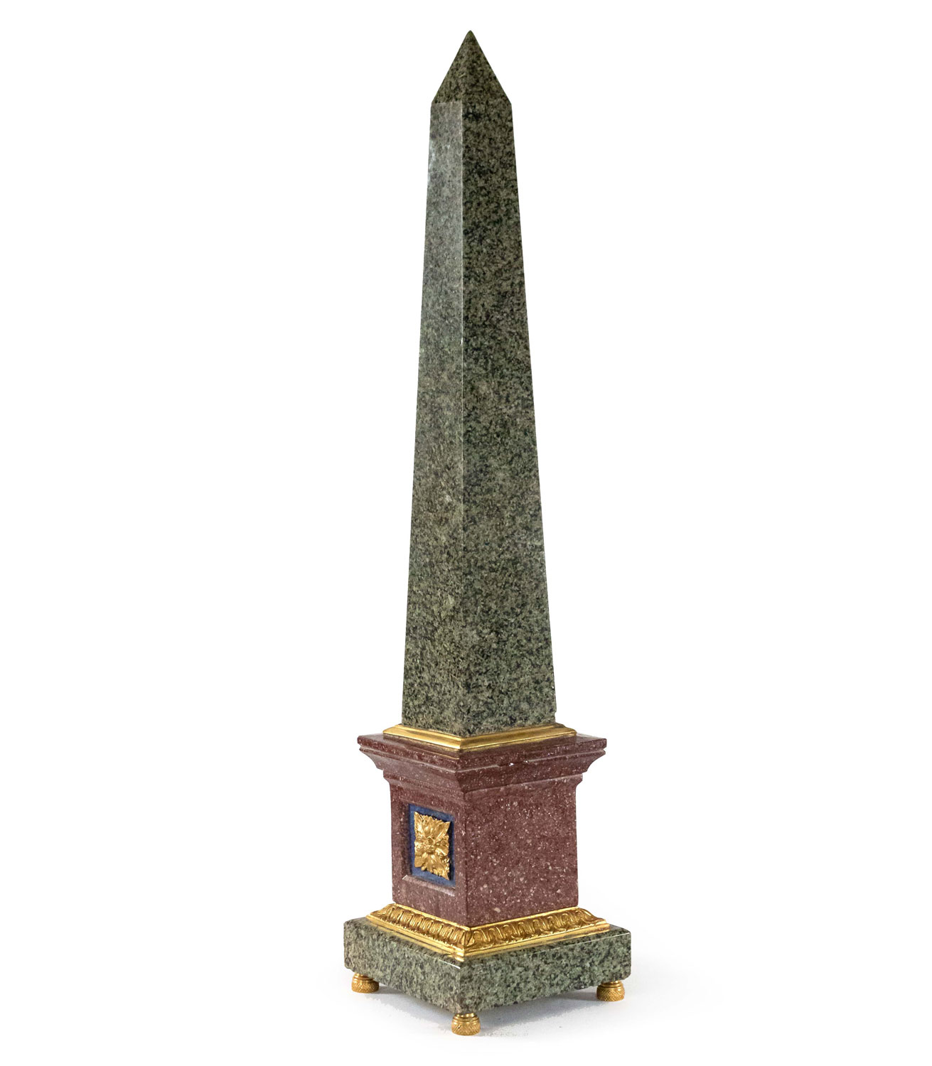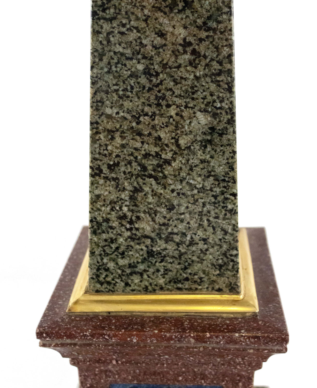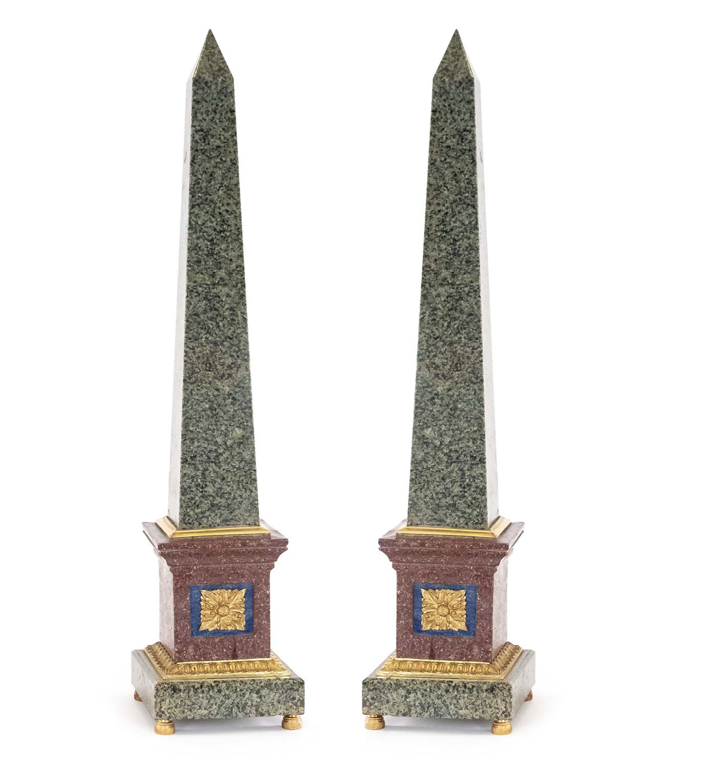 PAIR of Italian Neo-classic Grand Tour-style (19/20th Century) bronze mounted hardstone obelisks with porphyry bases (PRICED AS PAIR)