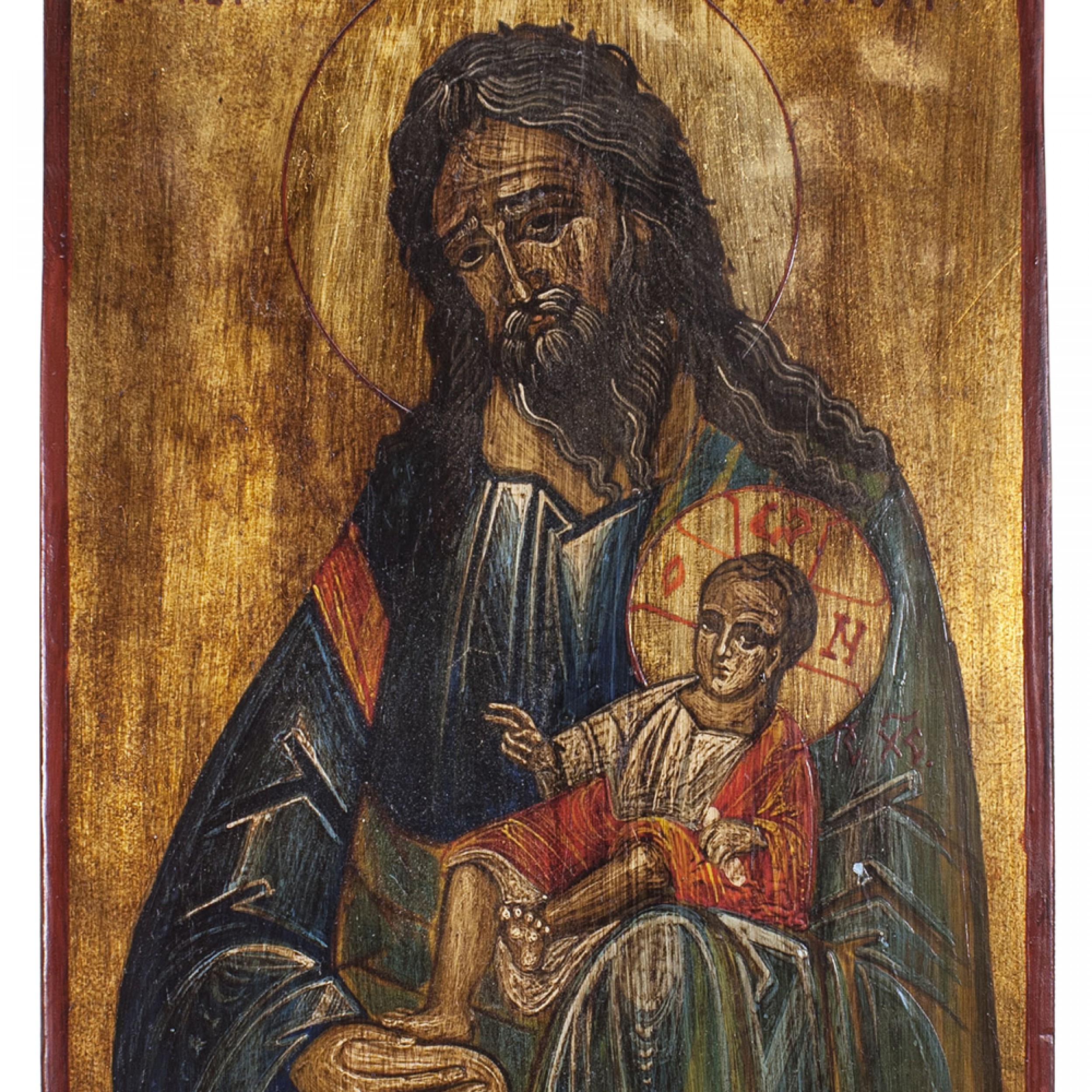 Eastern Orthodox (Greek) egg-tempora on wood painted icon of St. Simeon (modern)