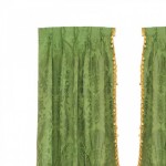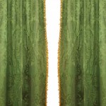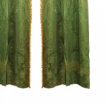 Pair of green damask drapes with gold tassel fringe (PRICED PER PAIR)