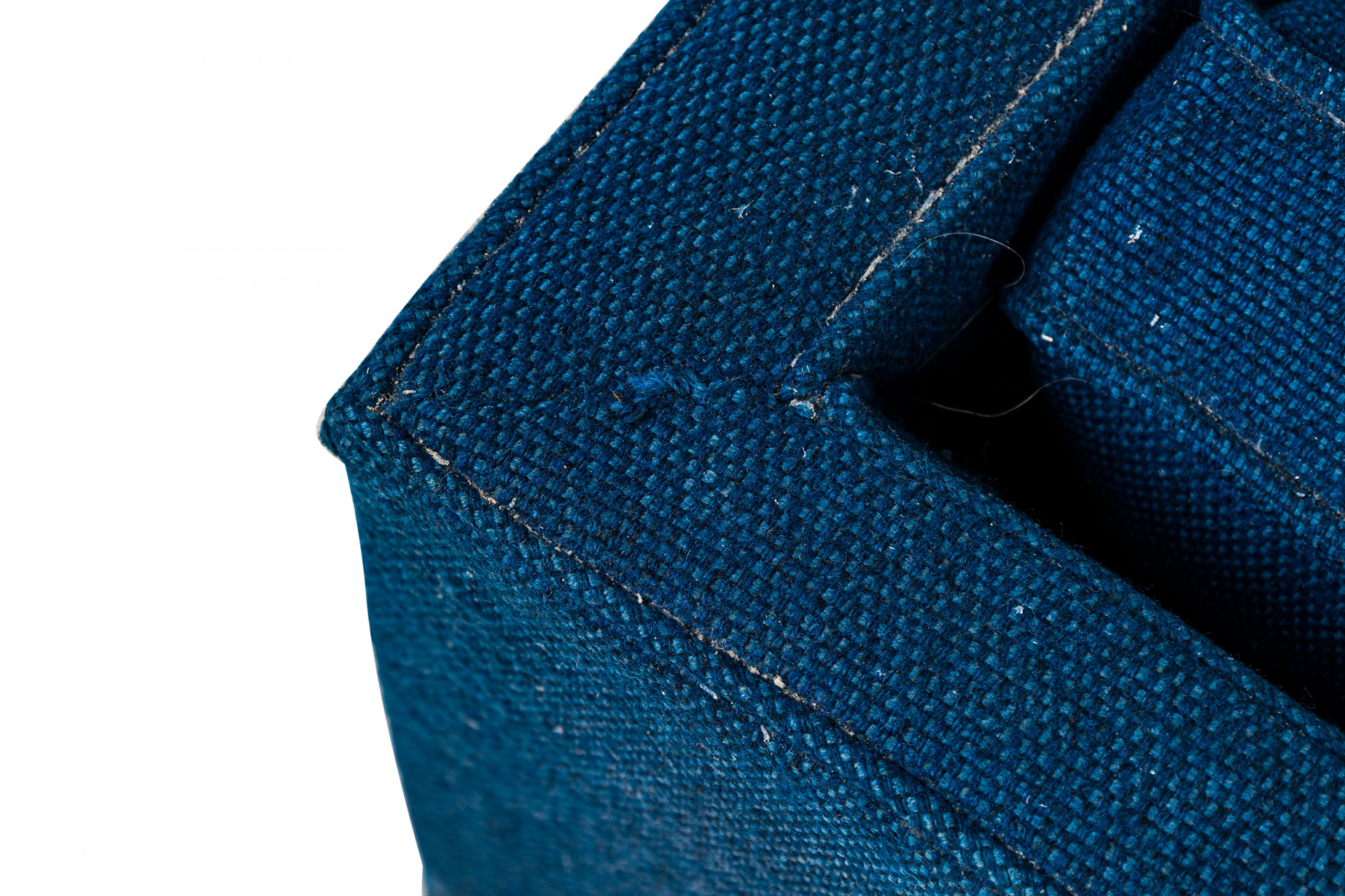Harvey Probber American Mid-Century Cube Form Blue Textured Fabric Upholstered Lounge / Armchair