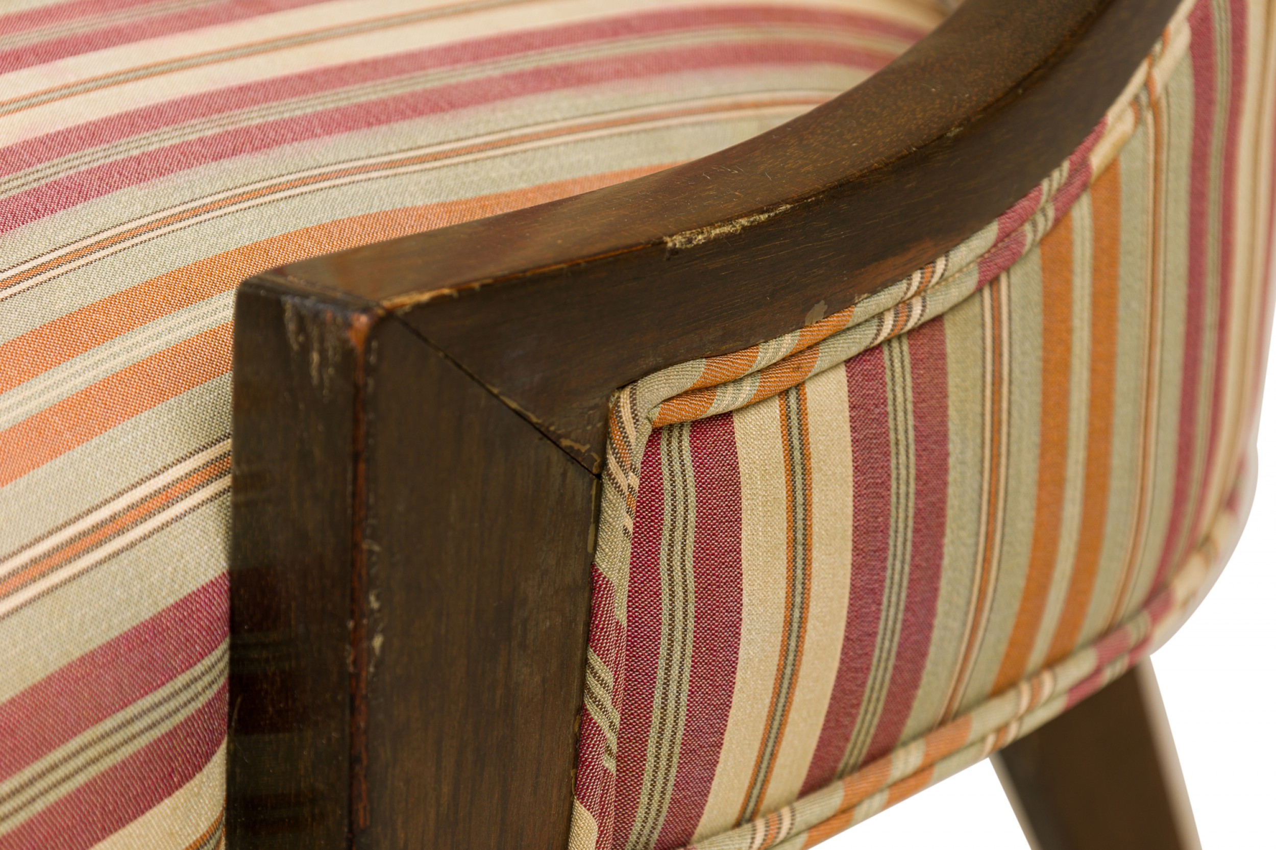 Style: Mid-Century Materials & Techniques: Fabric, wood Category: Seating Good; Wear consistent with age and use