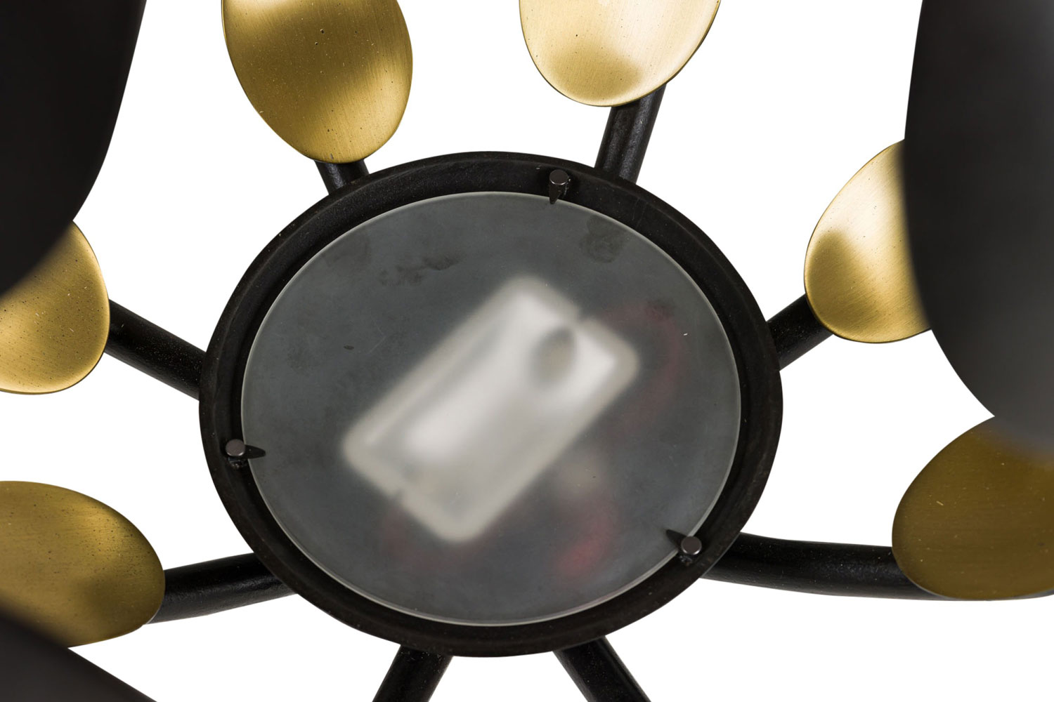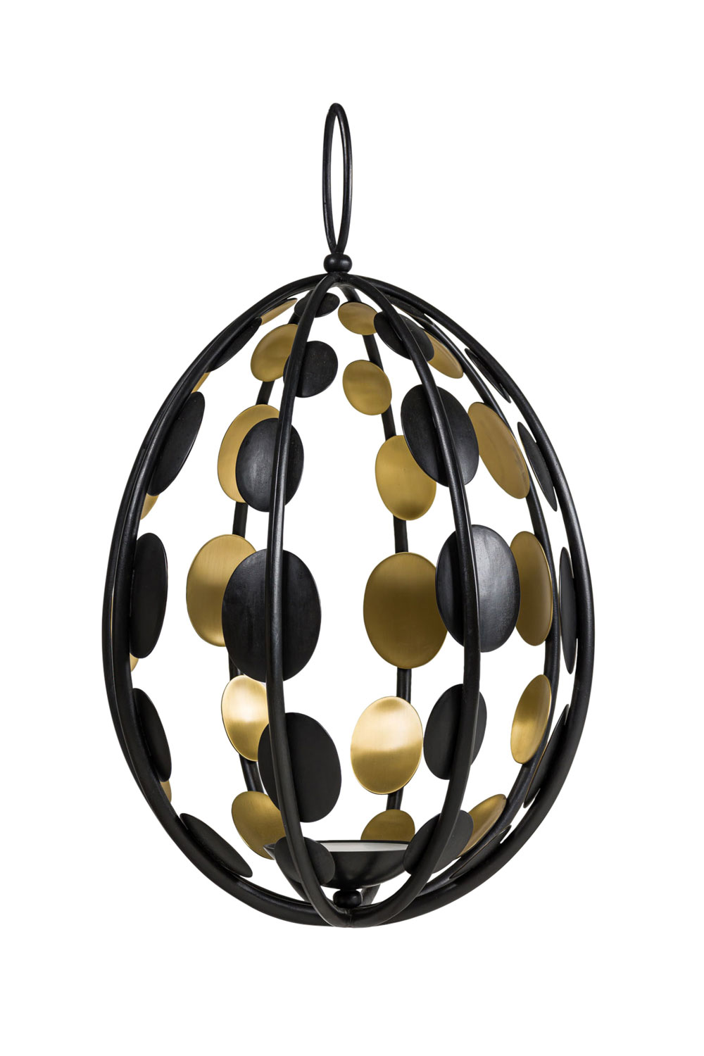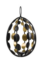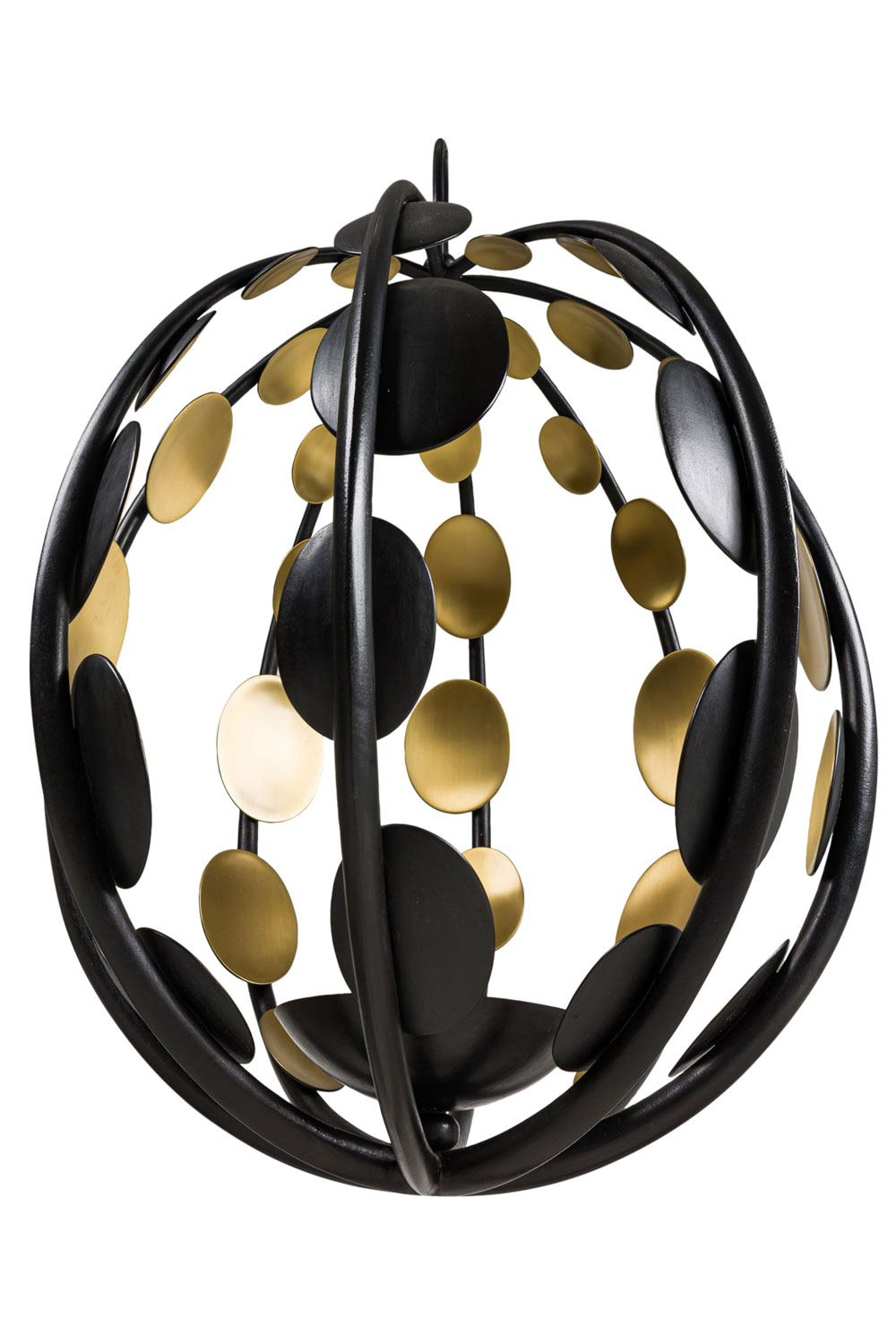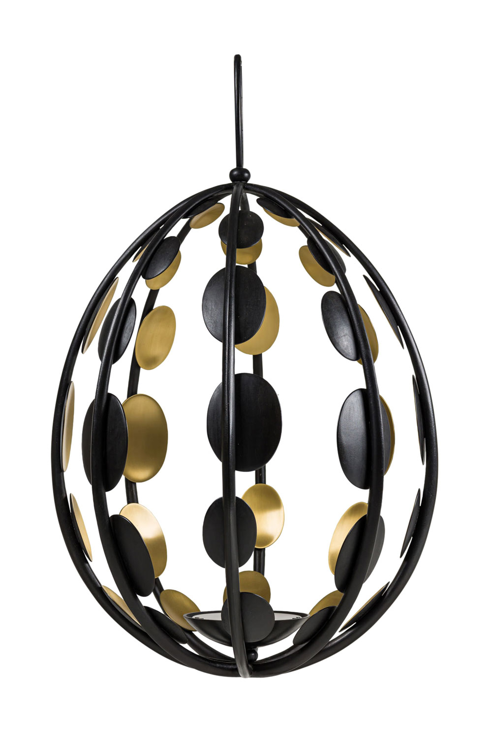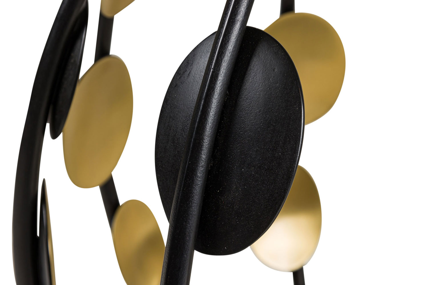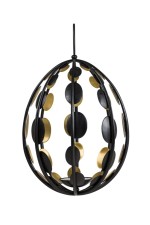 French contemporary "Ellipse" pendant chandelier with an elliptical open shape with strands of black and gold oval medallions (HERVE VAN DER STRAETEN) (Limited edition of 30).